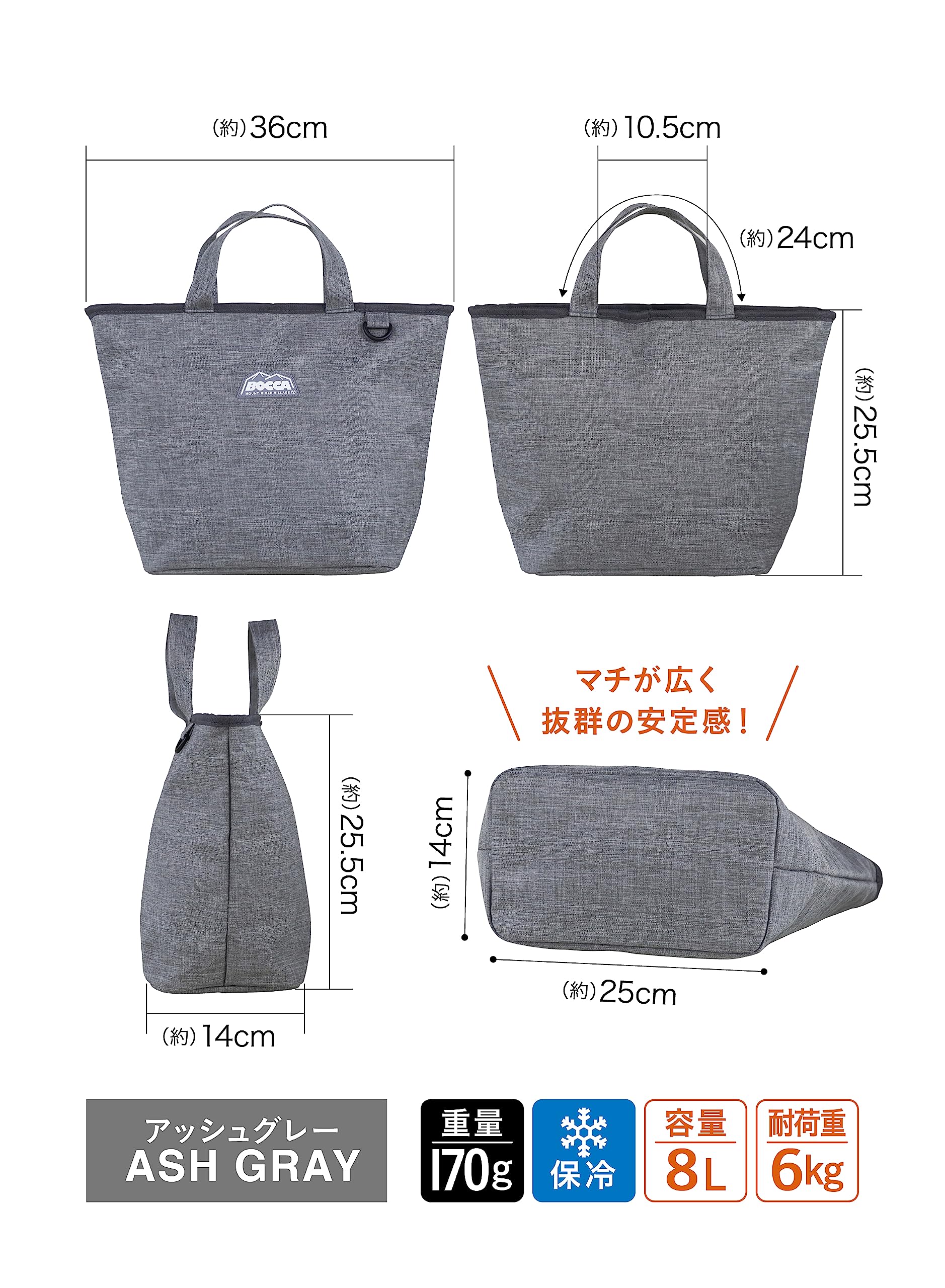 【数量限】シービージャパン 保冷バッグ お弁当 容量8L 内面アルミ 保冷仕様 アッシュグレー 保冷ランチトート BOCCA
