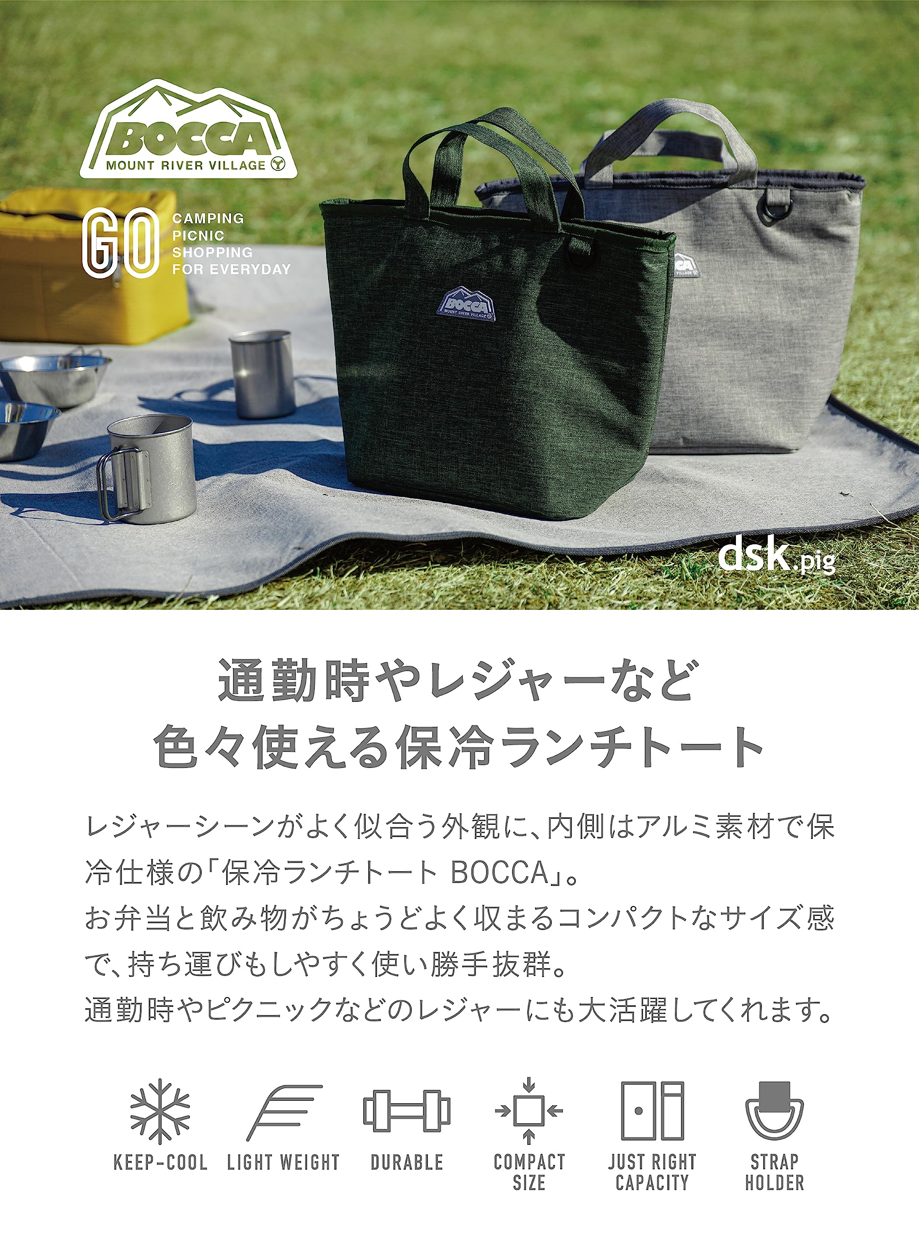 軽くて扱いやすいランチトートは、通勤時やピクニックなどのレジャーにも大活躍してくれます。普段使いもしやすいデザインなので、ちょっとした買い物でも気軽にお使いいただけます。