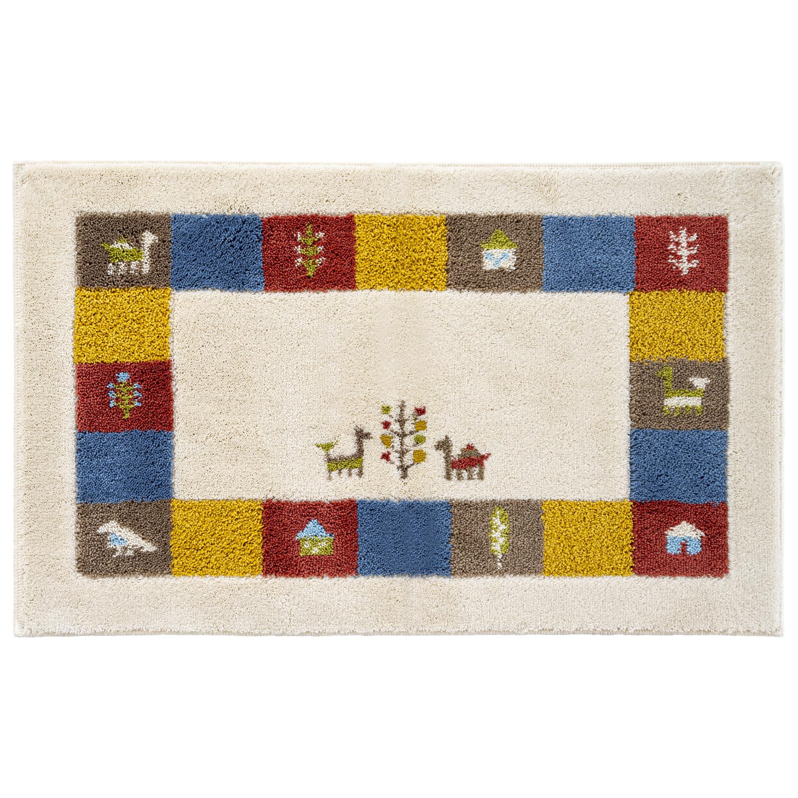 オカ(OKA) コーナー吸着玄関マット シエラ 約45cm×75cm ベージュ(ギャッベ柄 ギャべ柄 エスニック アジアン 抗菌 防臭 洗える 屋内 ずれにくい おしゃれ)
