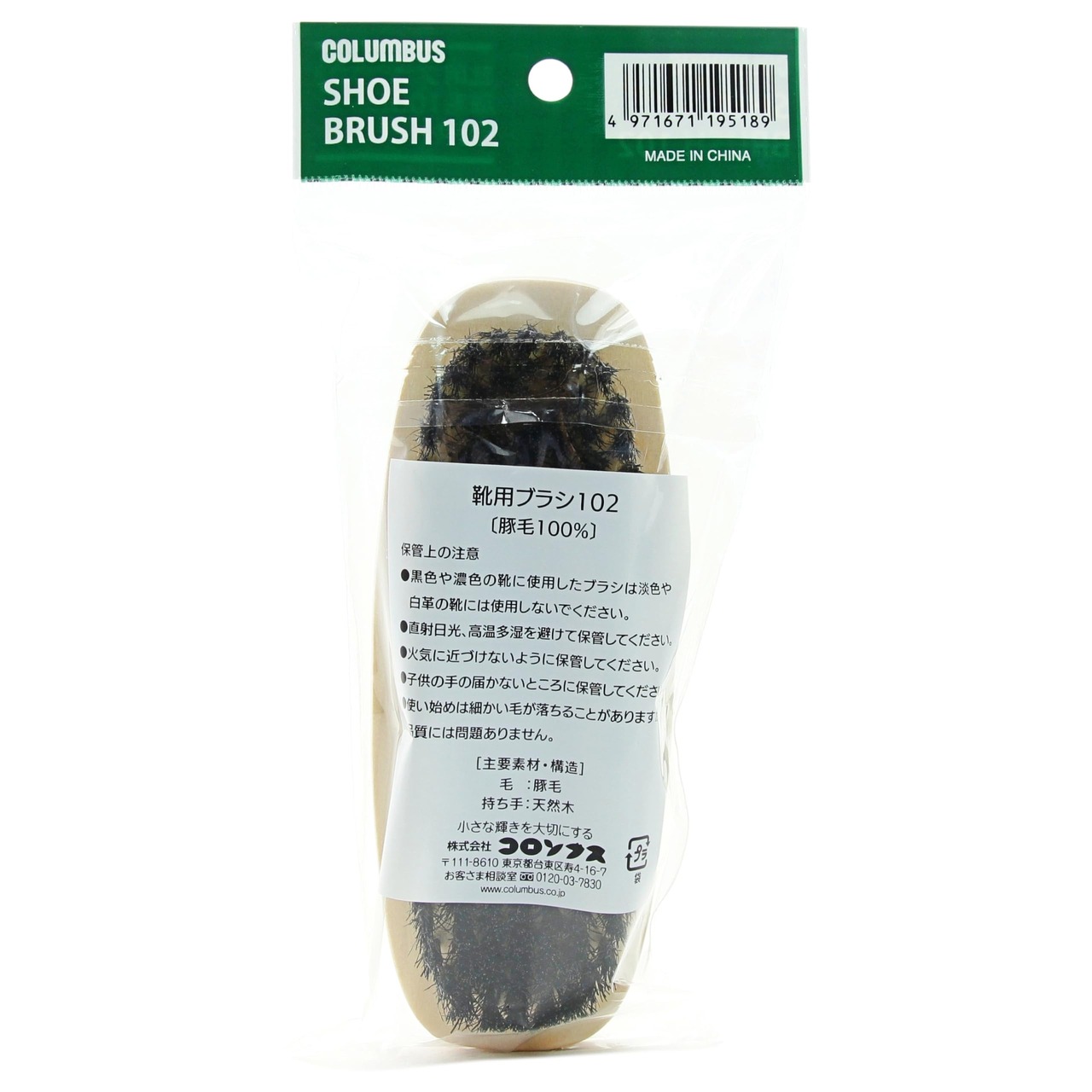 [コロンブス] メンズ 靴用ブラシ 豚毛100% シューケア 靴磨き 仕上げ クッション性 カジュアル デイリー スポーツ ウォーキング 19518