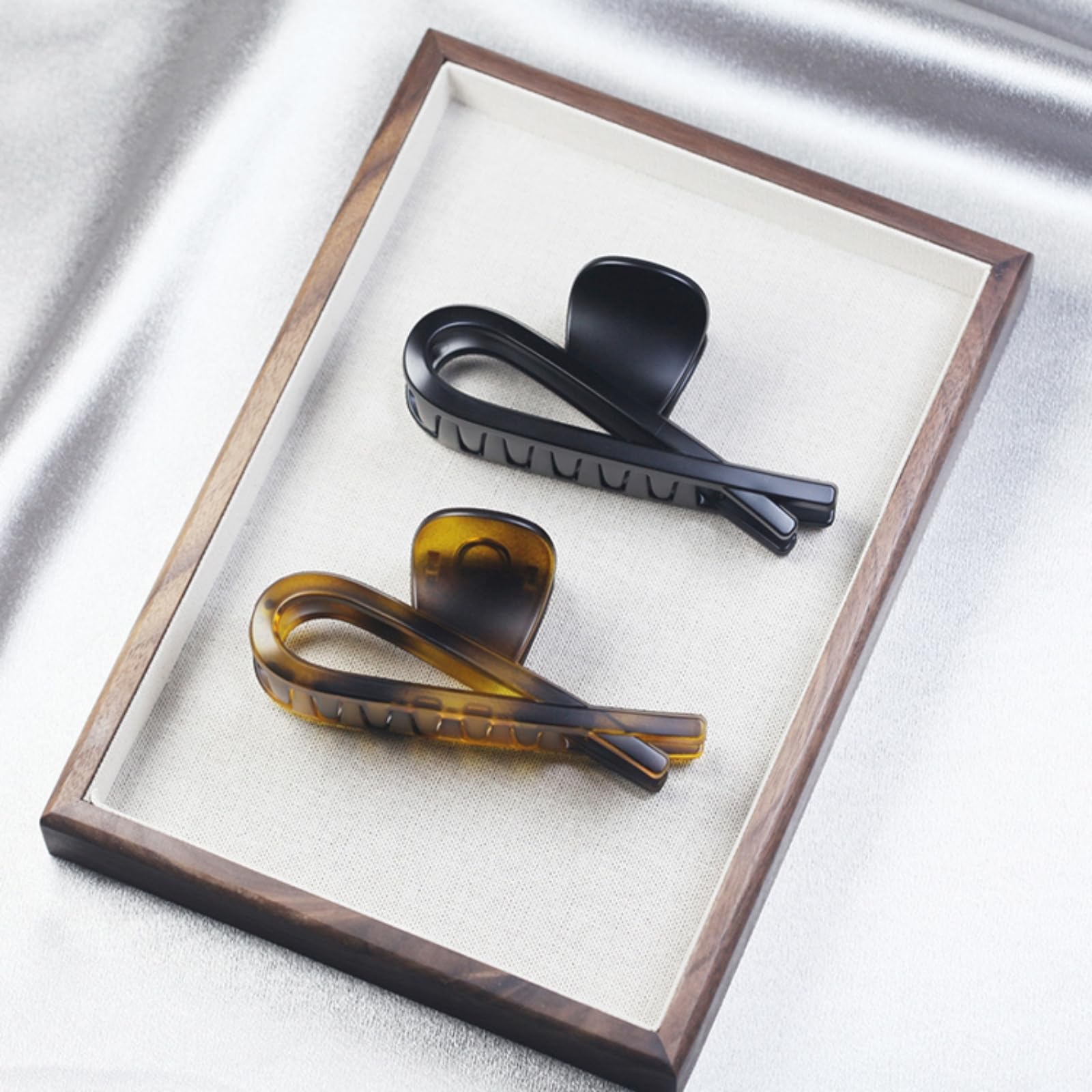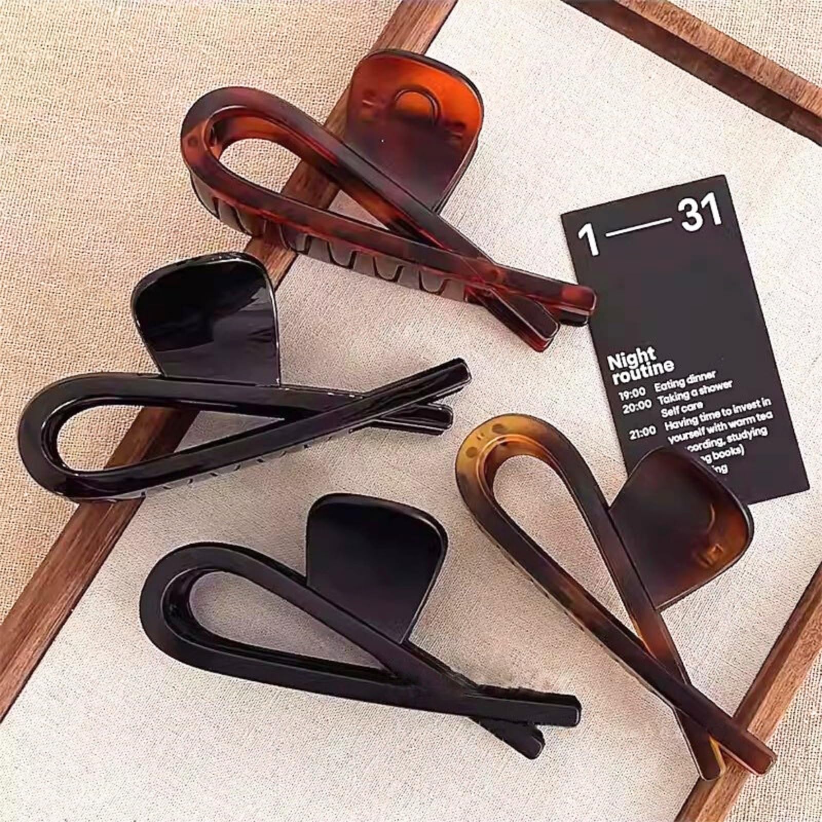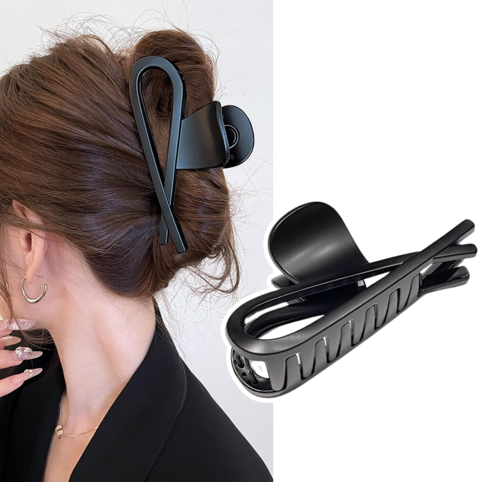 【仕様】:サイズ:約 11cm;素材:強い錆びない合金バネ・合成樹脂;カラー:アンバー, ダークブラウン, マットブラック、光沢のある黒。ヘアクリップは樹脂加工で耐久性抜群、色が褪せにくく、柔軟性があり、防水性にも優れているので、お風呂場でも安心してお使いください。