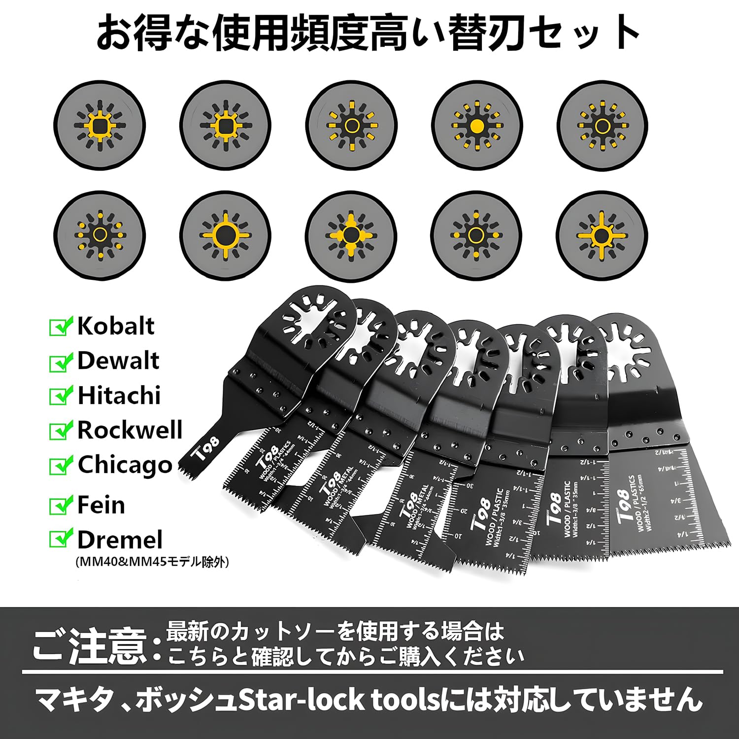 T98 ブレードカットソー マルチツール用替刃セット 23点 日立 ボッシュ等多機種対応 木材釘金属切断 先端工具セット 鋸刃互換 電動工具アクセサリー メタル