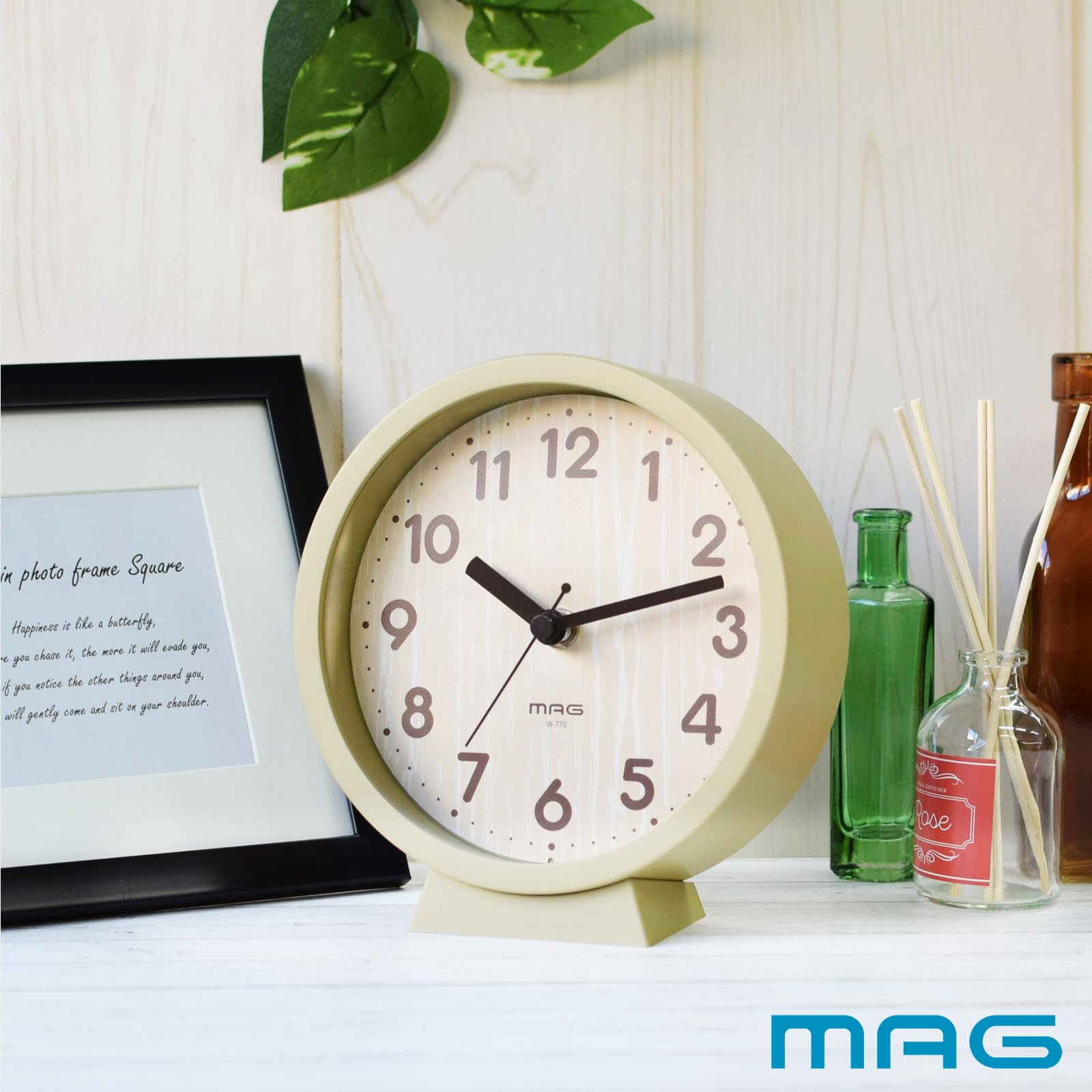 MAG(マグ) 小さい 小型 掛け時計 壁掛け時計 置き時計 置き掛け兼用 スタンド アナログ かわいい おしゃれ インテリア ウッディ 木目調 静音 連続秒針 直径15.0㎝ ナチュラル コンポート W-770 N-Z ノア精密