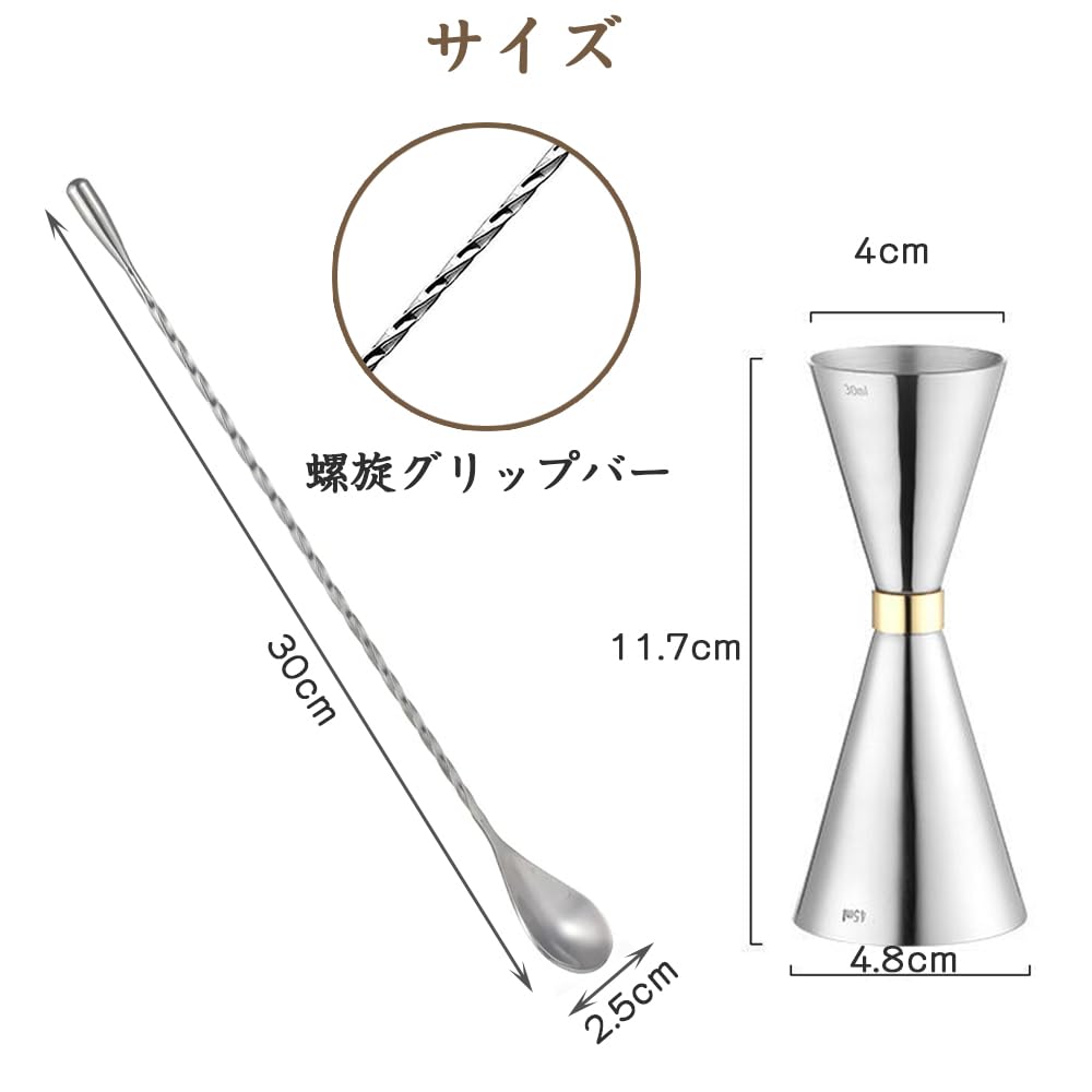 【完璧なセット】30ml/45mlオンスカップ×1、30cmバースプーン×1。バーテンダー愛好家、初心者、プロのバーテンダーに最適です。