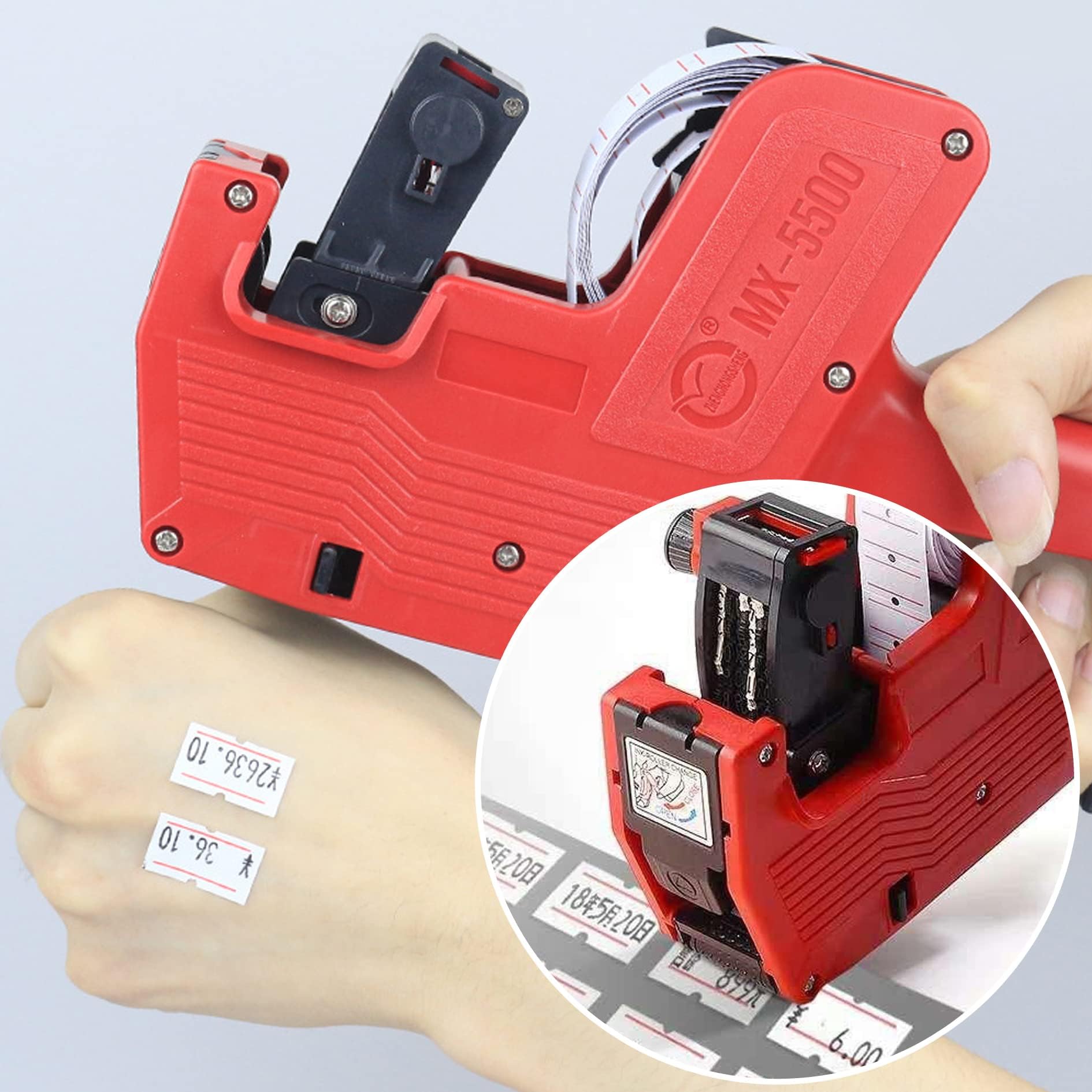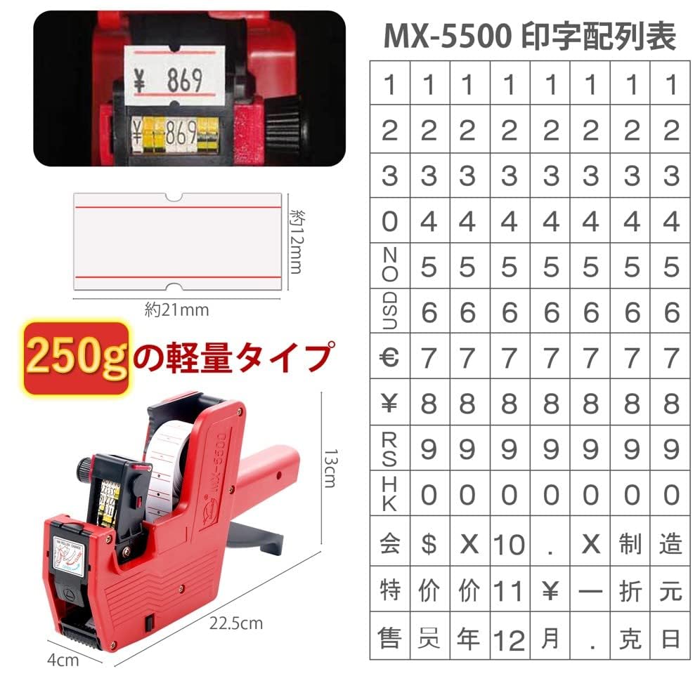 ハンドラベラー 業務用+ ラベル 10巻 プライス タグ 軽量タイプ 値札 賞味 期限 (レッド)