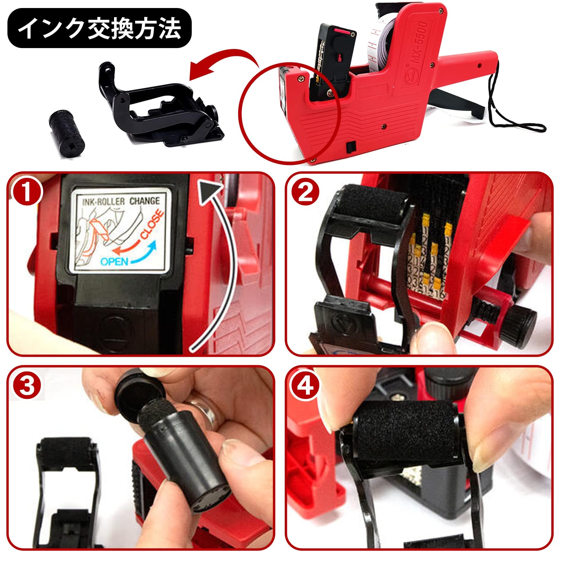 ? ハンドラベラー 本体 × 1個 , 交換用 ラベル 10巻(1巻400枚) ,交換用 インク 1個