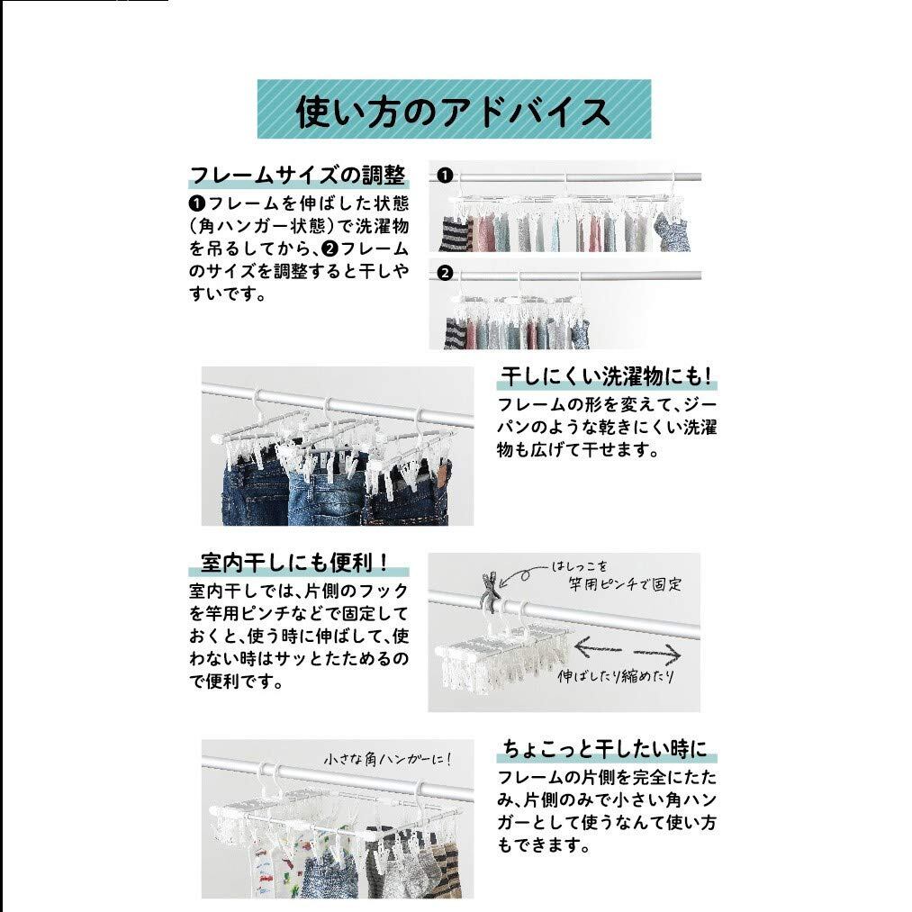 ●本品のフック部は直径30mm以下の竿に対応していますが、竿への固定機能はありませんので、風等によって横すべりすることがあります。 また上記以外のもの、及びS型フック・針金等に掛けた場合はハンガーが落下するおそれがありますので使用しないでください。