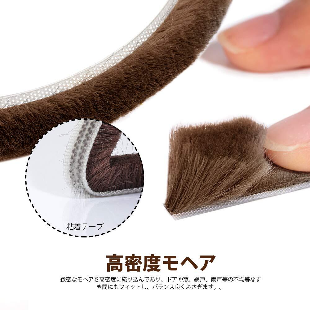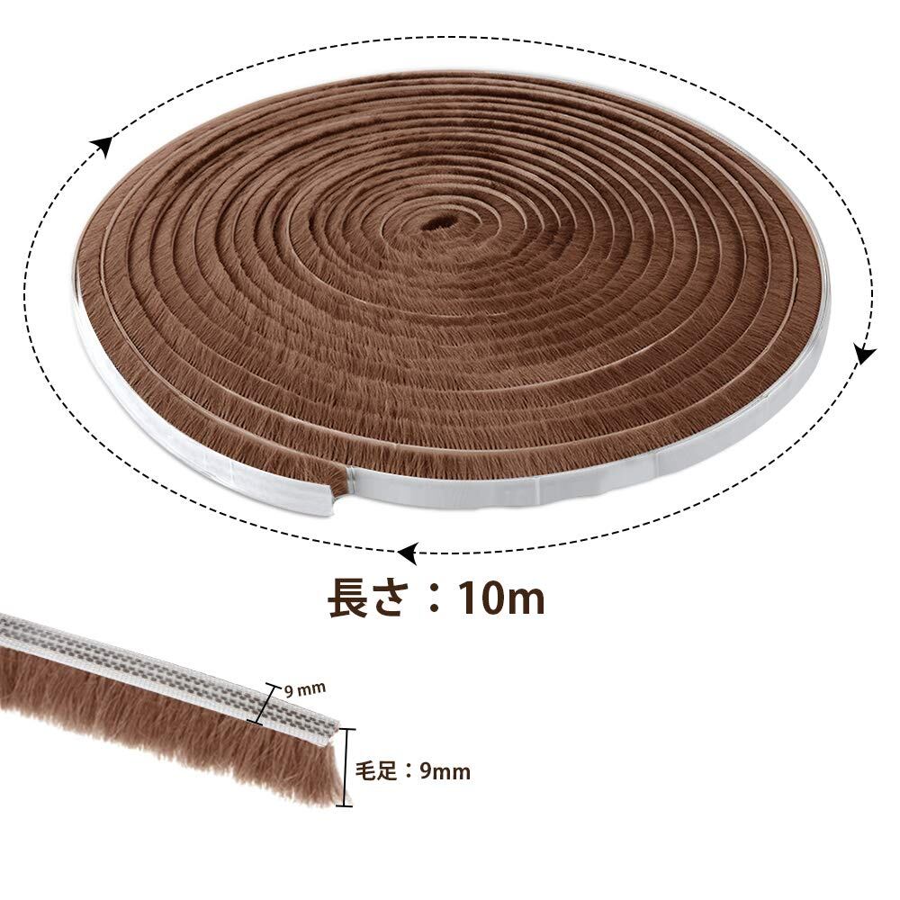 Leobro 隙間テープ すきまモヘアテープ 網戸用 10m×9mm×9mm ブラウン モヘア すき間シール 虫よけすき間テープ 玄関ドア 戸当たり 窓 サッシ用 隙間対策