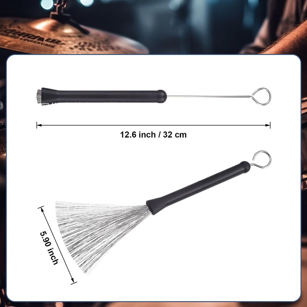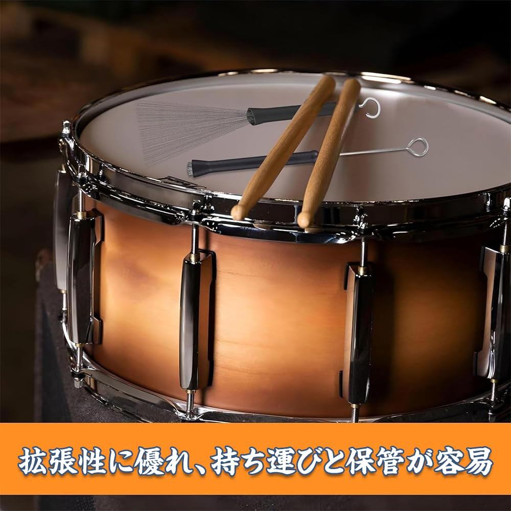 ドラムブラシ ワイヤー スティック 金属 用ナイロン 大人用 スティック 音楽愛好 ブラック 2個セット