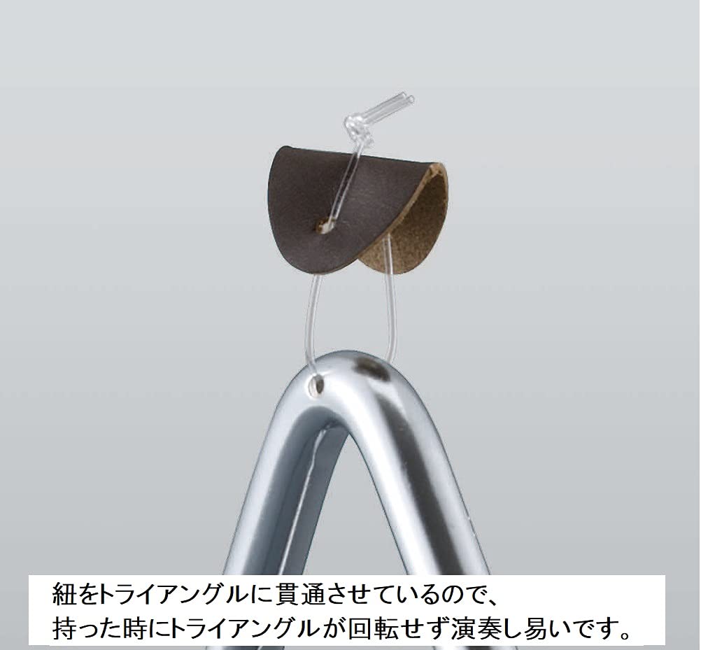 紐をトライアングル本体に貫通させているので、持った時に本体が回転せず演奏しやすいのも特長です。