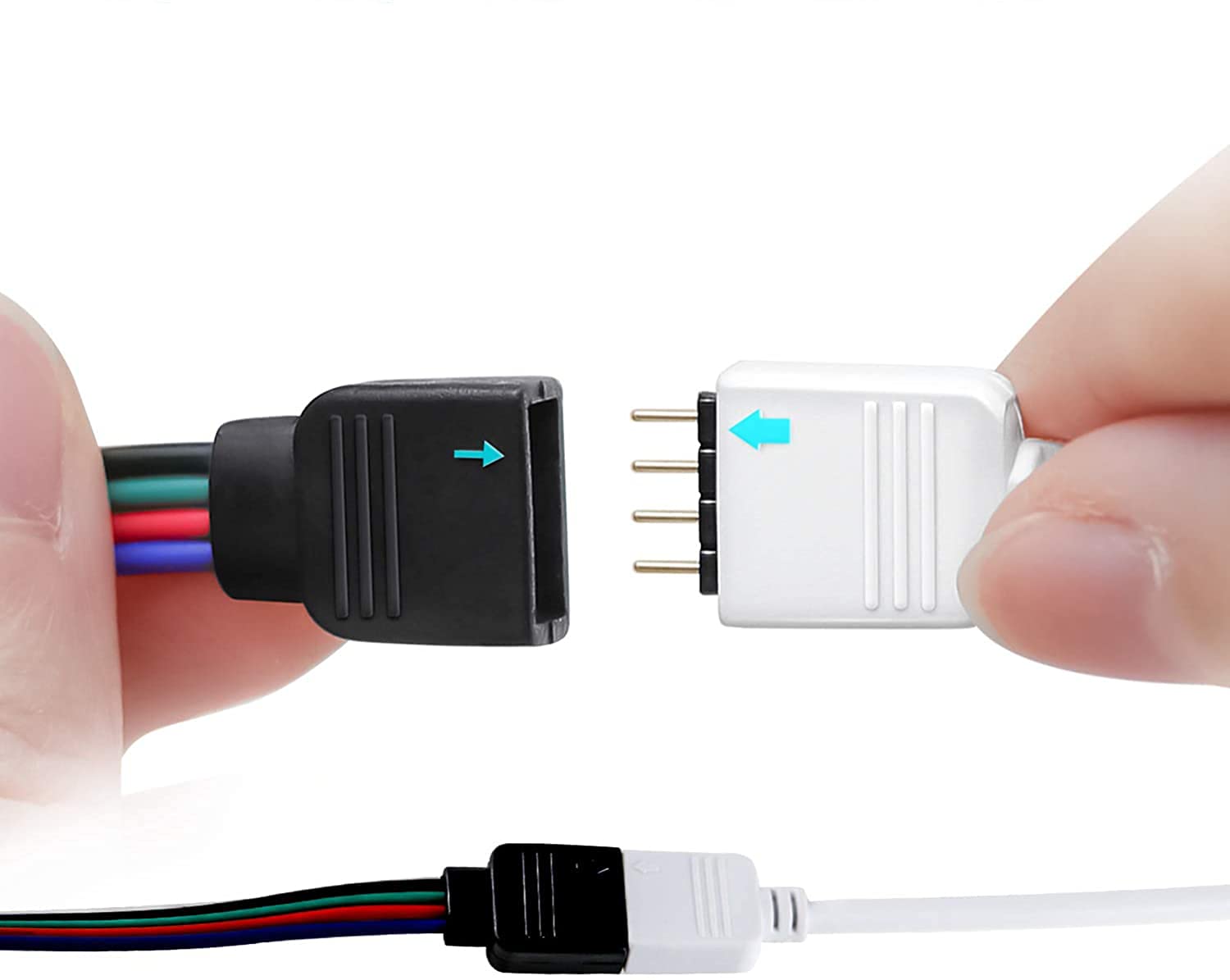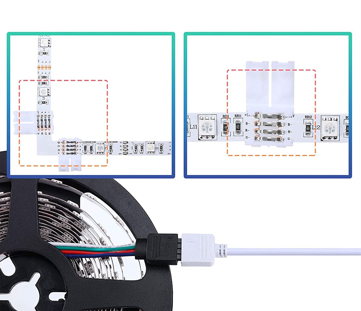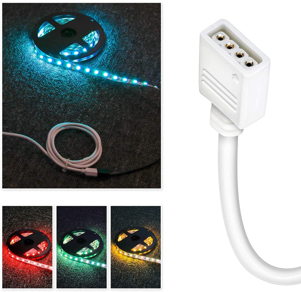 簡単に接続できます。パッケージに同梱されている4ピンのオス型コネクタを使用すると、このケーブルをSMD 5050/3528/2835 RGB LEDテープまたはIR / RFコントローラに直接挿入できます。はんだは不要です。