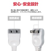 ■定格 AC125V 15A ■最大定格電力:1500Wまで ■コード長:1m ■カラー:ホワイト