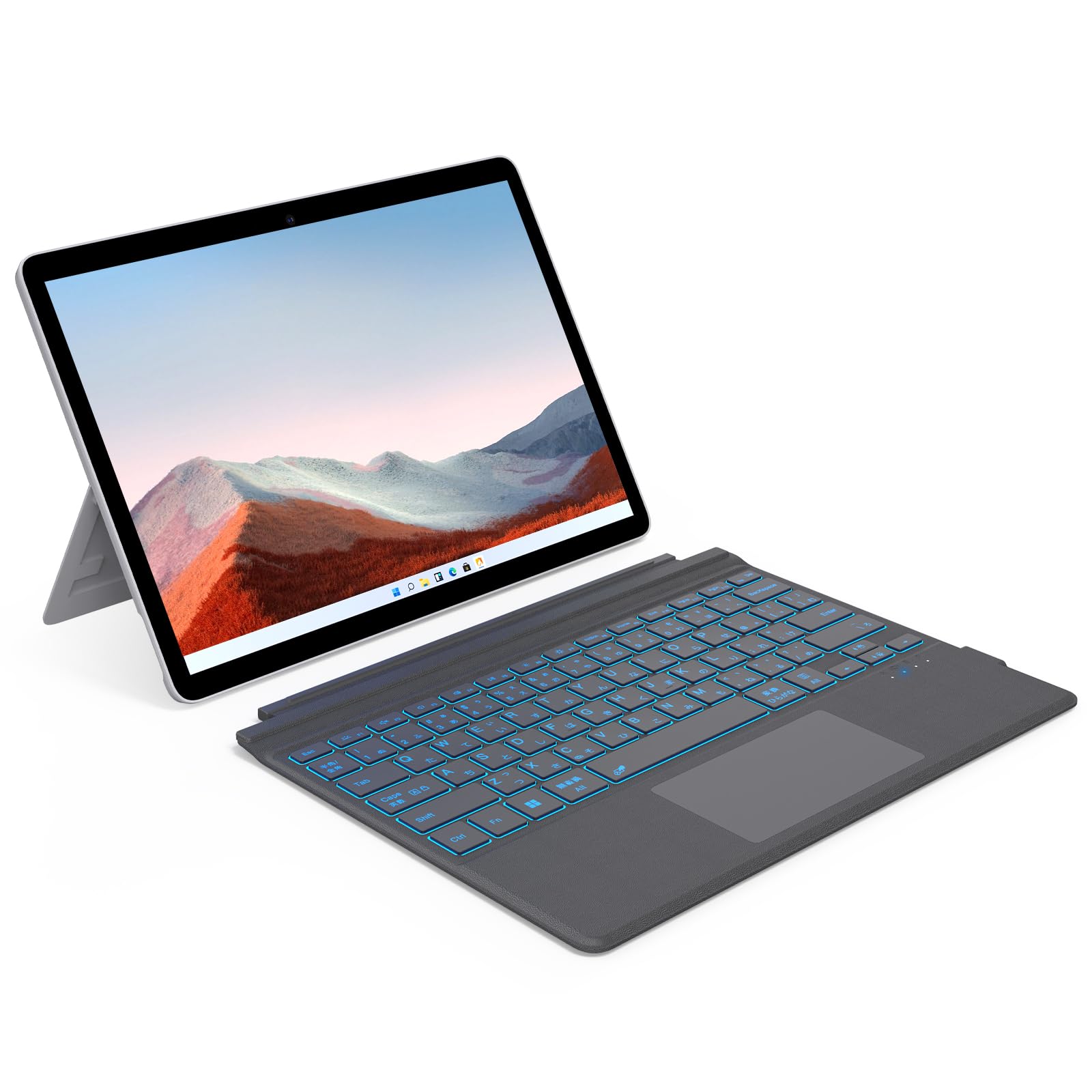 マイクロソフト サーフェースキーボードSurface Proキーボード Surface Pro3/4/5/6/7/7+通用 高精度トラックパット キーボードカバー 省エネ オートスリープ 超薄スリム 軽量 持ち運びやすい 磁気吸着 Typ-C充電 脱着式 日本語取扱説明書