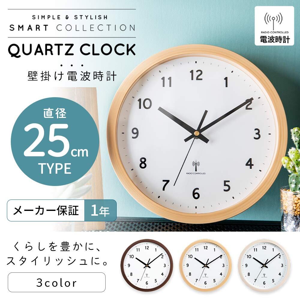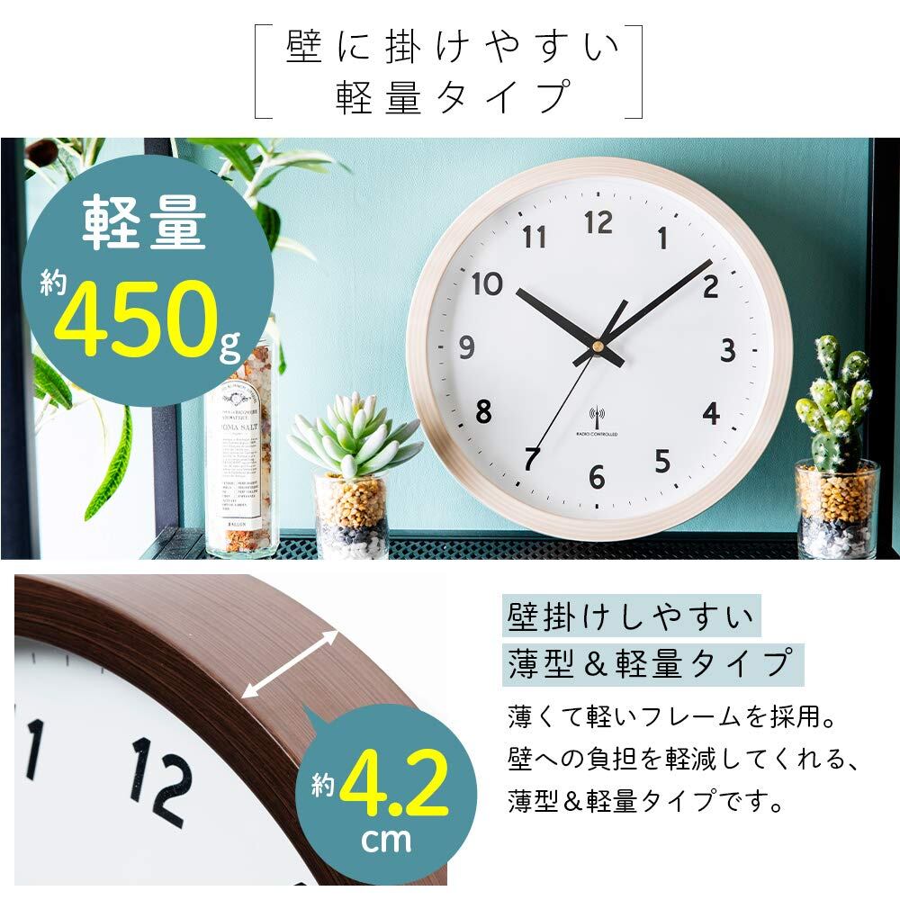 アイリスプラザ 掛け時計 電波時計 ナチュラル 直径25cm 文字盤あり 電波受信していつでも正確な時間を刻む 軽量450g 薄型厚み4.2cm 秒針は一秒一秒「チクタク」と進むステップムーブメントタイプ 一人暮らし シンプルデザイン 秒針 1年付き PWCRR-25-M