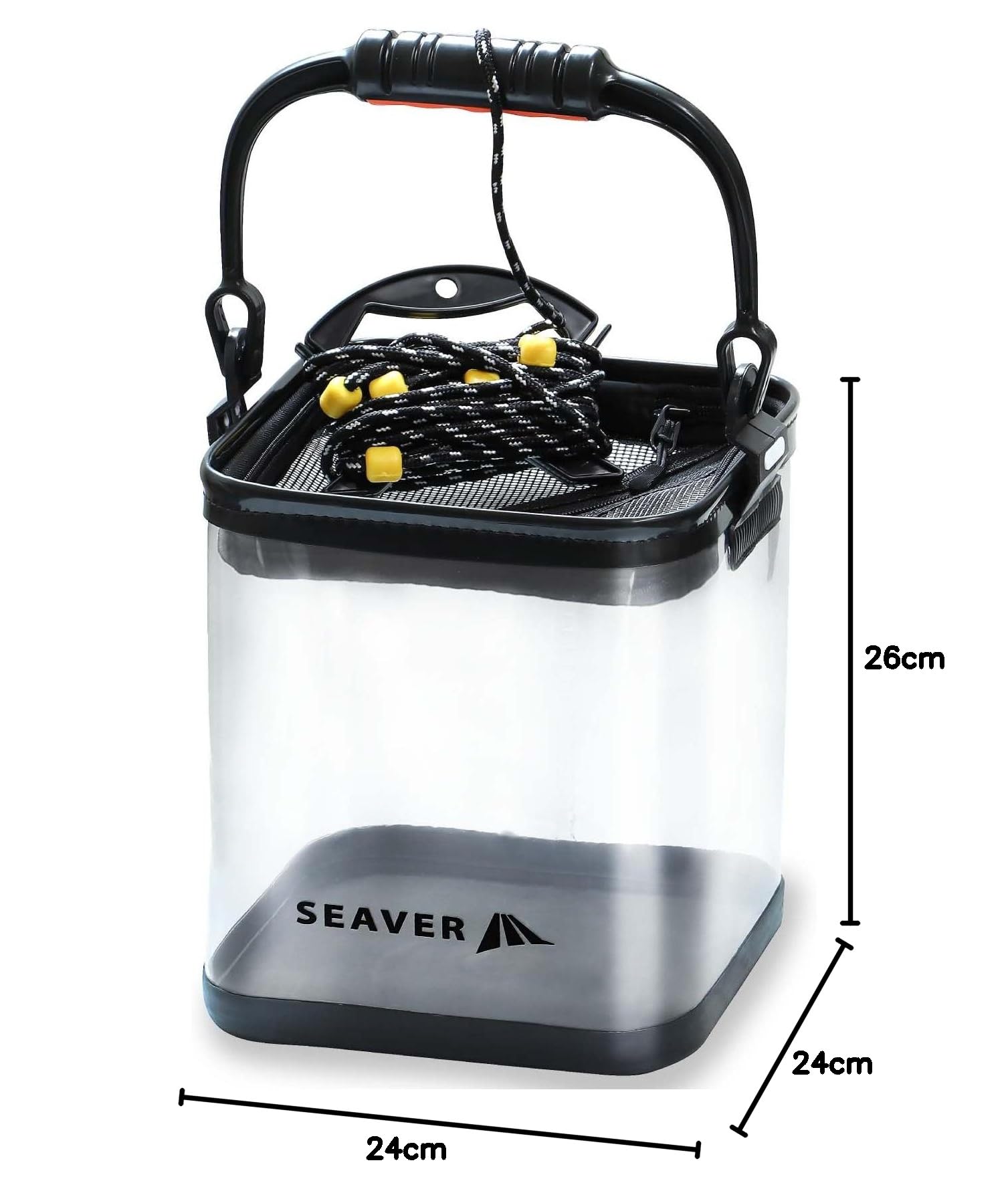 釣り バケツ 透明 選べる 3点セット 【魚が一目瞭然】 釣り道具 水汲み 折りたたみ プライヤー フィッシュグリップ 20cm 24cm SEAVER(シーバー)