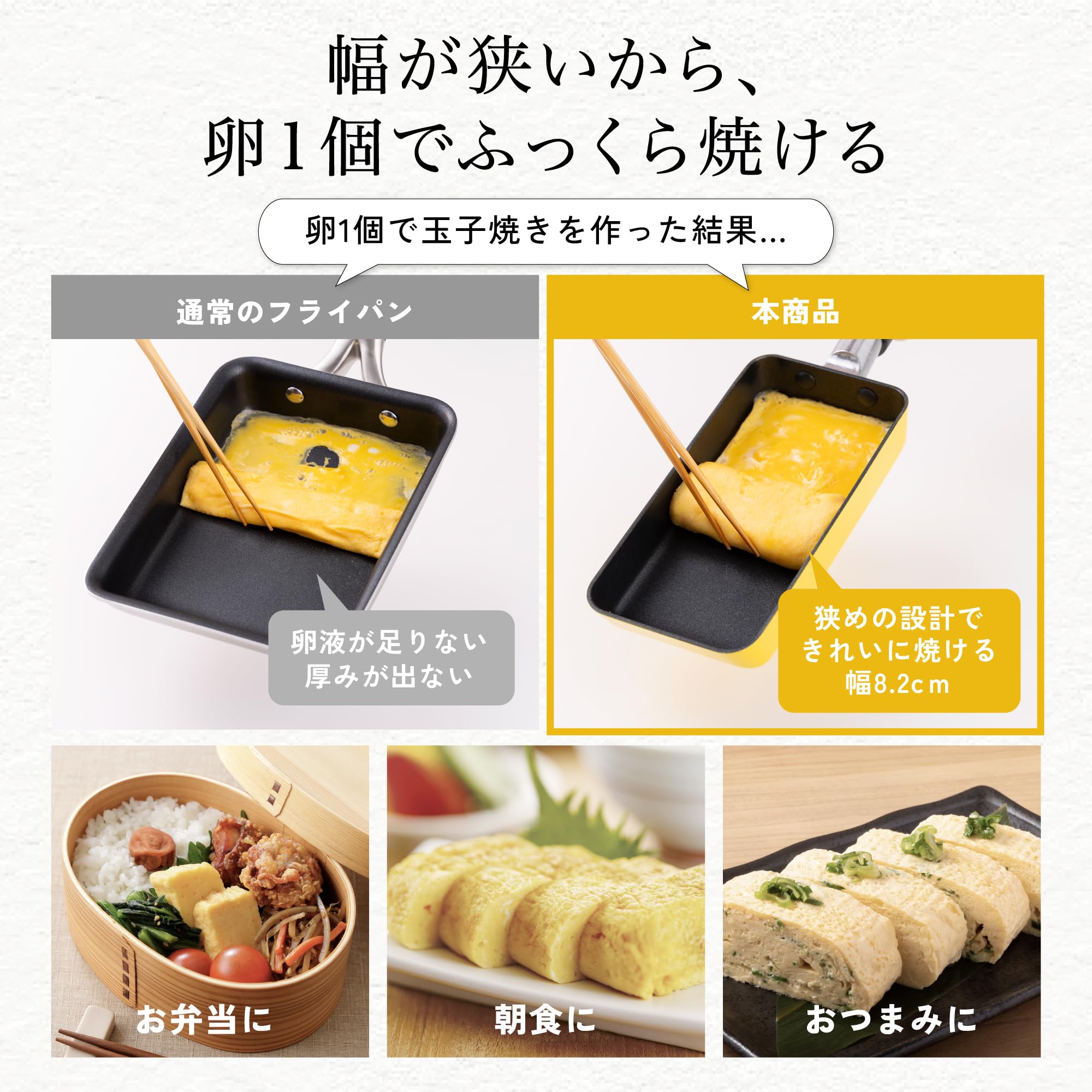 たまご1個分の玉子焼きを手軽につくれるフライパン