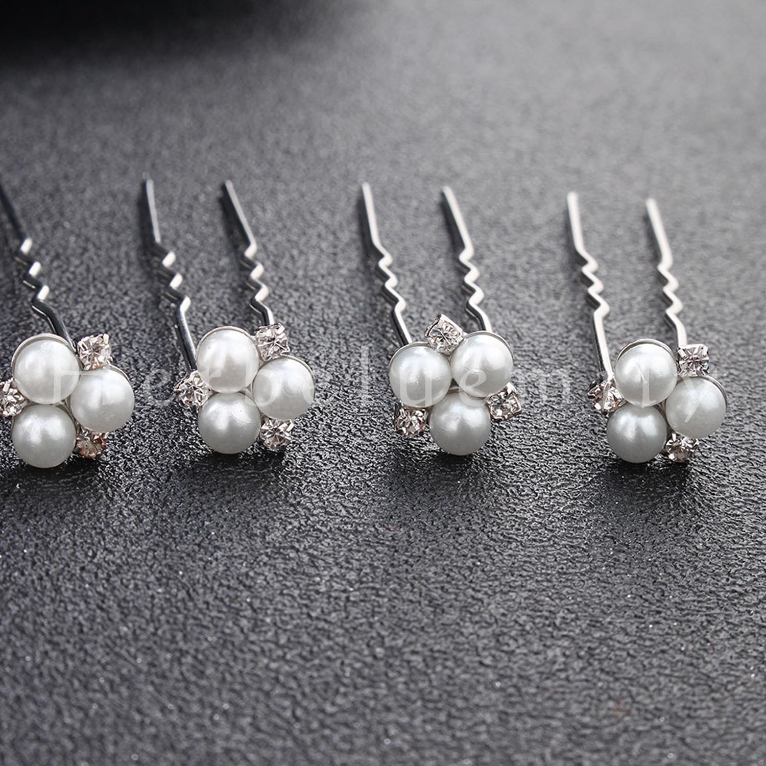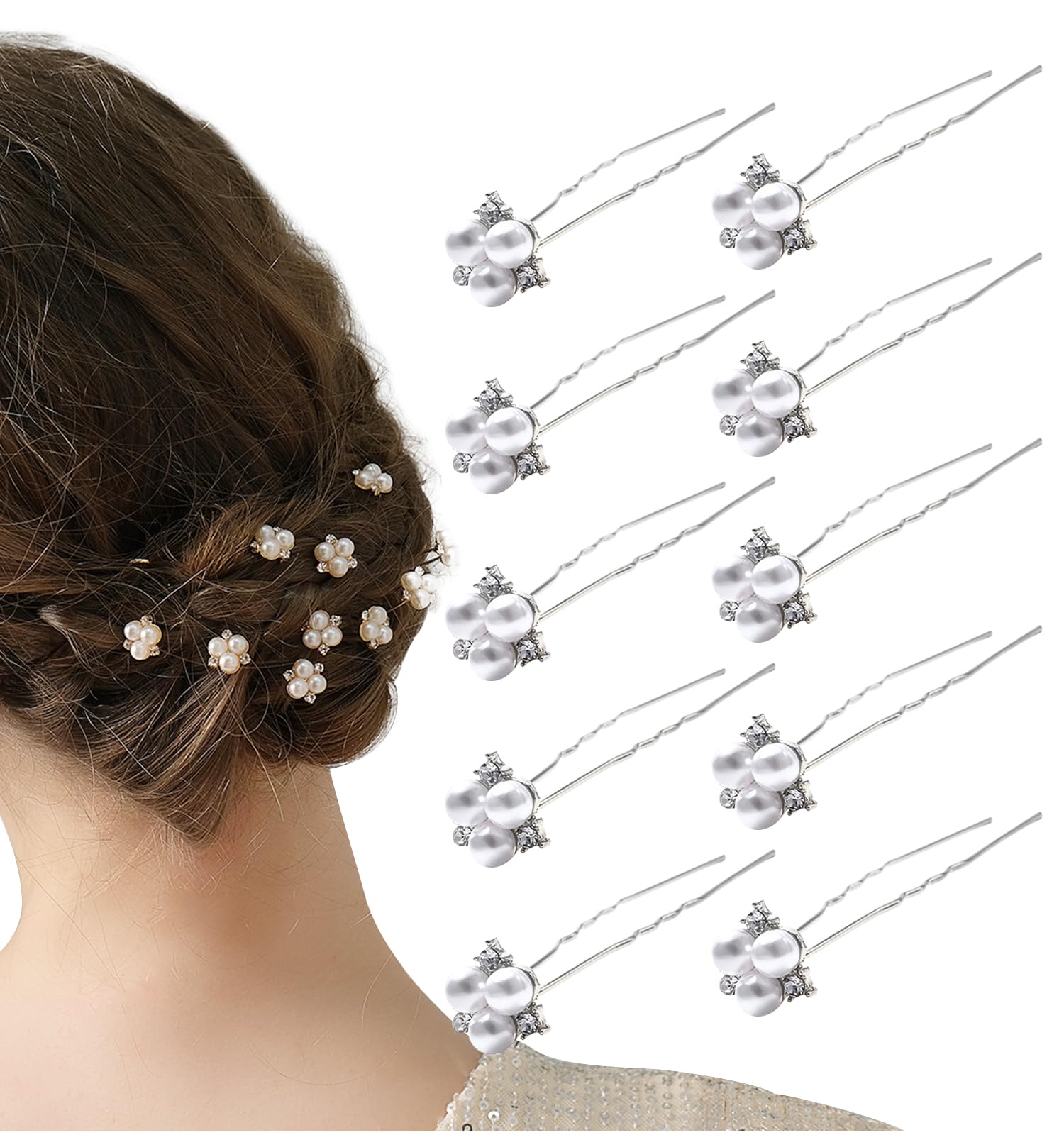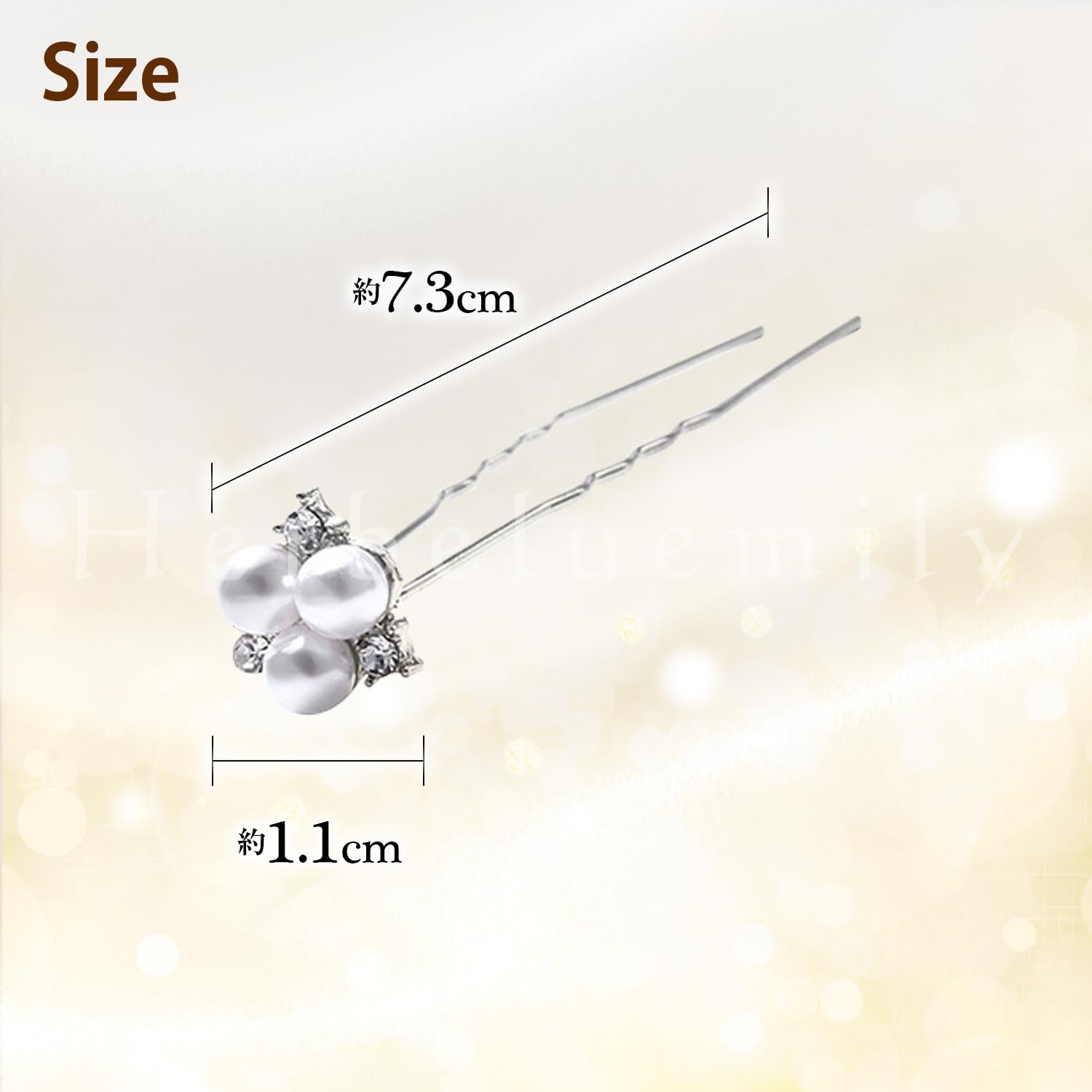 [Herbeluemily] パールピン 髪飾り パール Uピン ヘアアクセサリー ヘアピン 結婚式 ピン 10本セット シルバー HM-0154-R07-SV