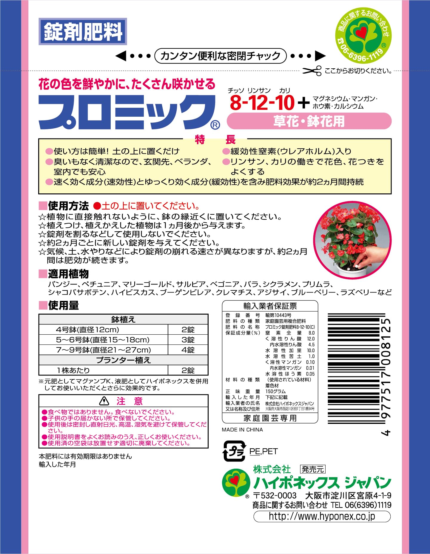 【特価在庫】ハイポネックスジャパン プロミック 草花・鉢花用 150g