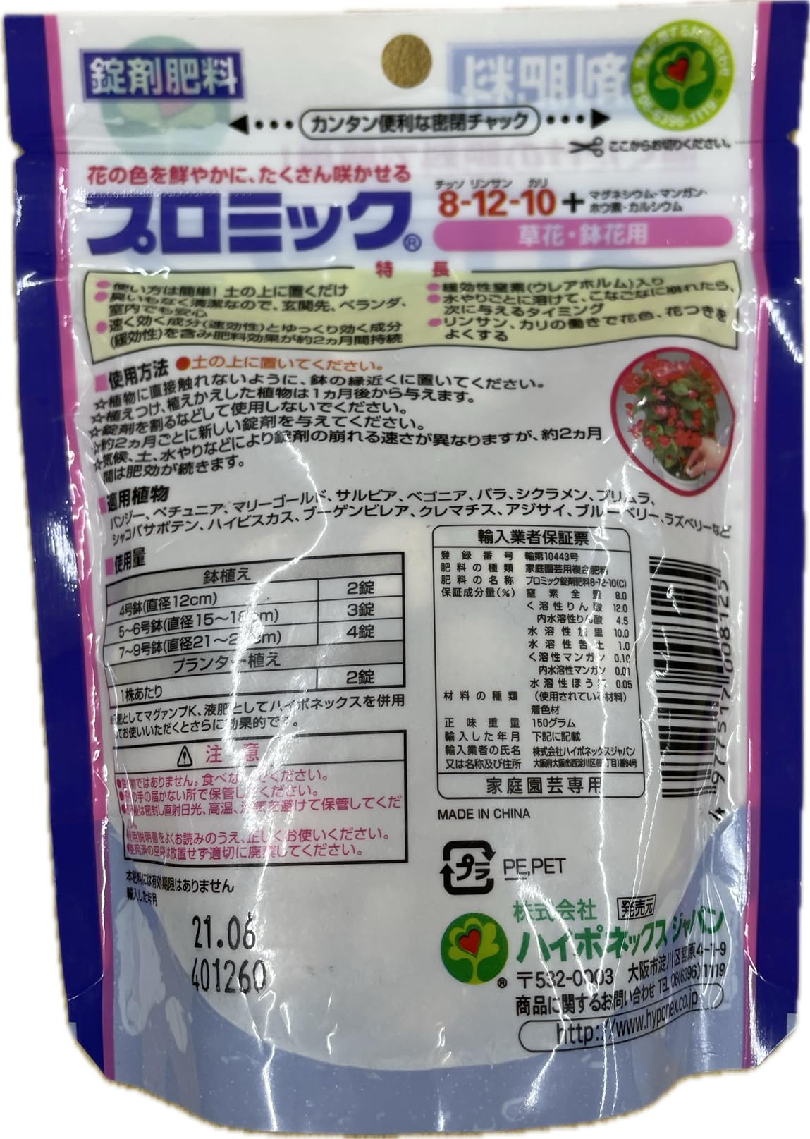 ハイポネックスジャパン プロミック 草花・鉢花用 150g