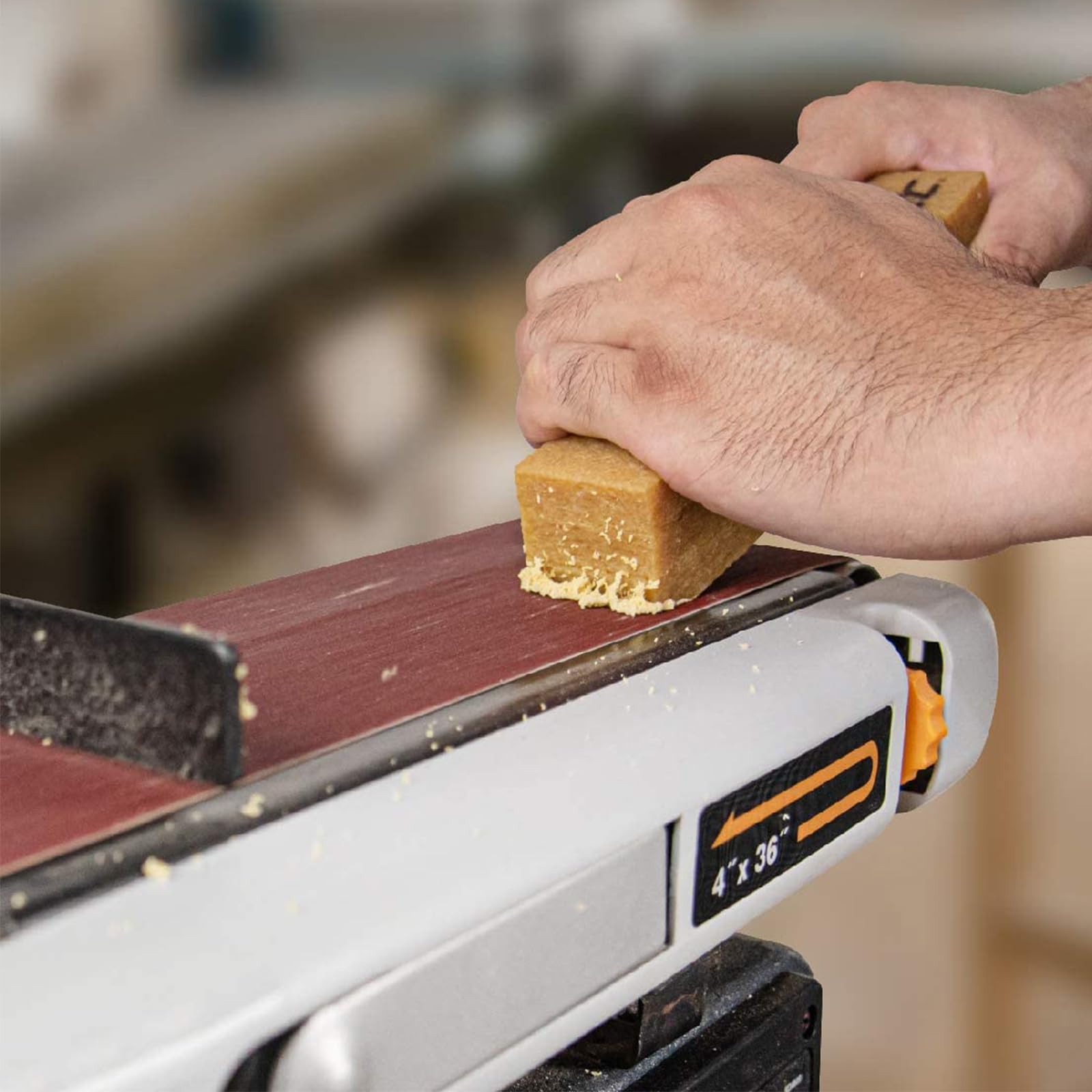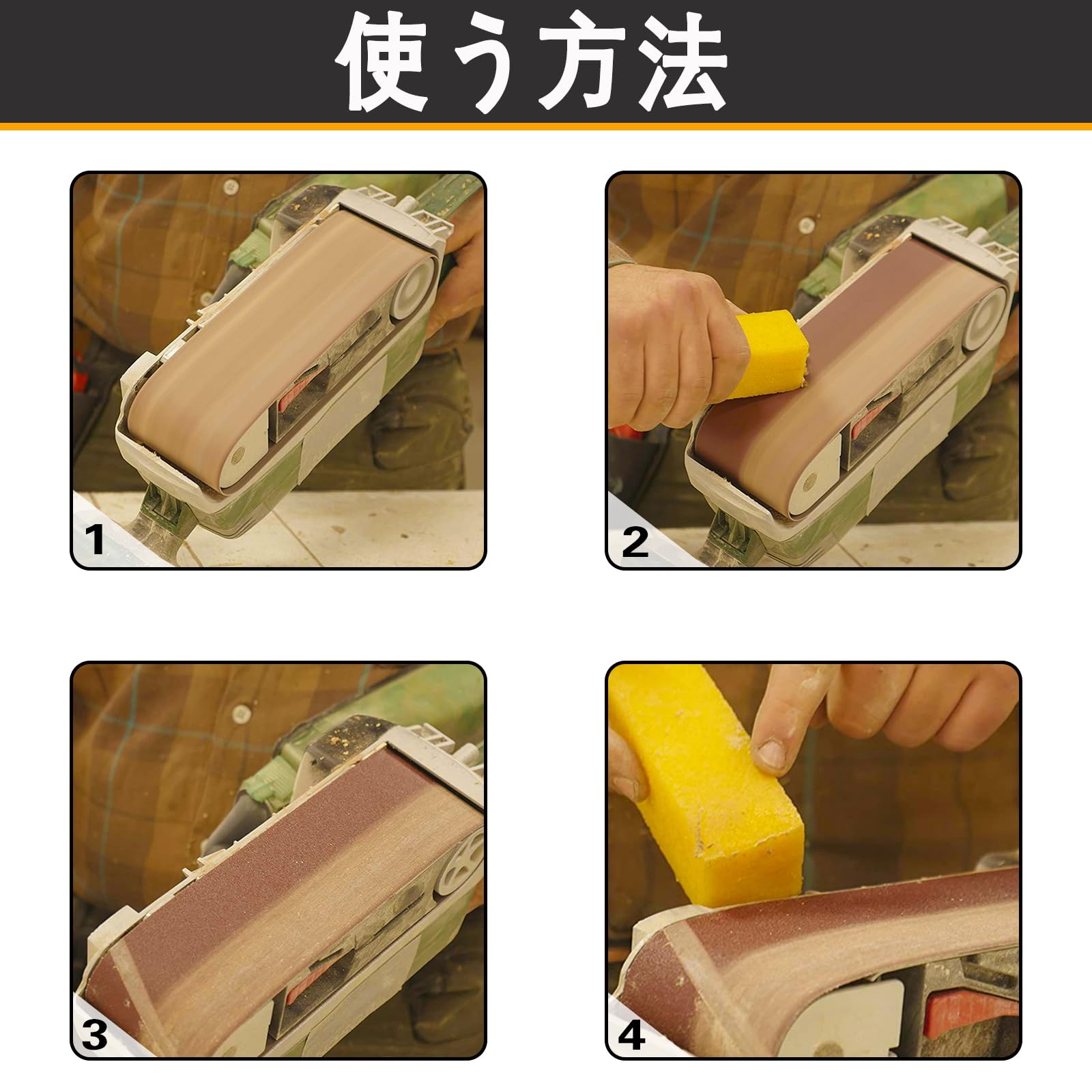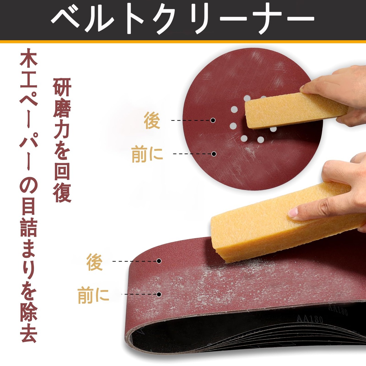 機能: 研磨ベルトの寿命を延ばし、木工ペーパーの目詰まりを除去し研磨力を回復