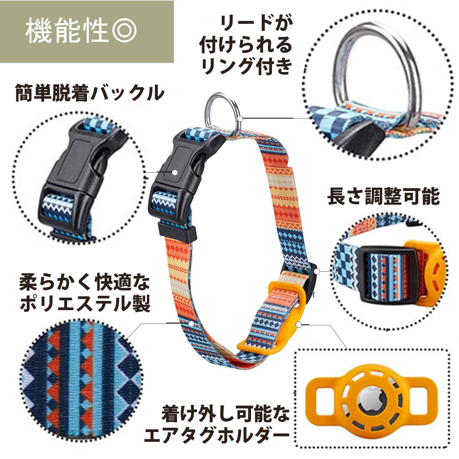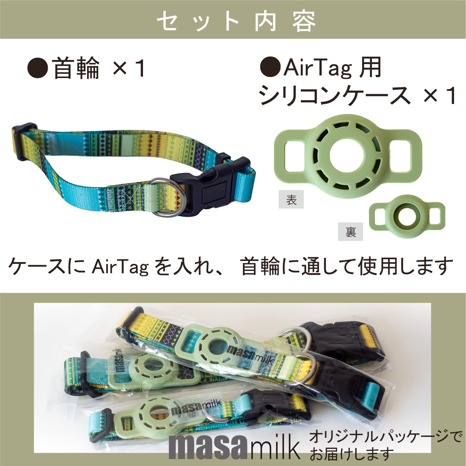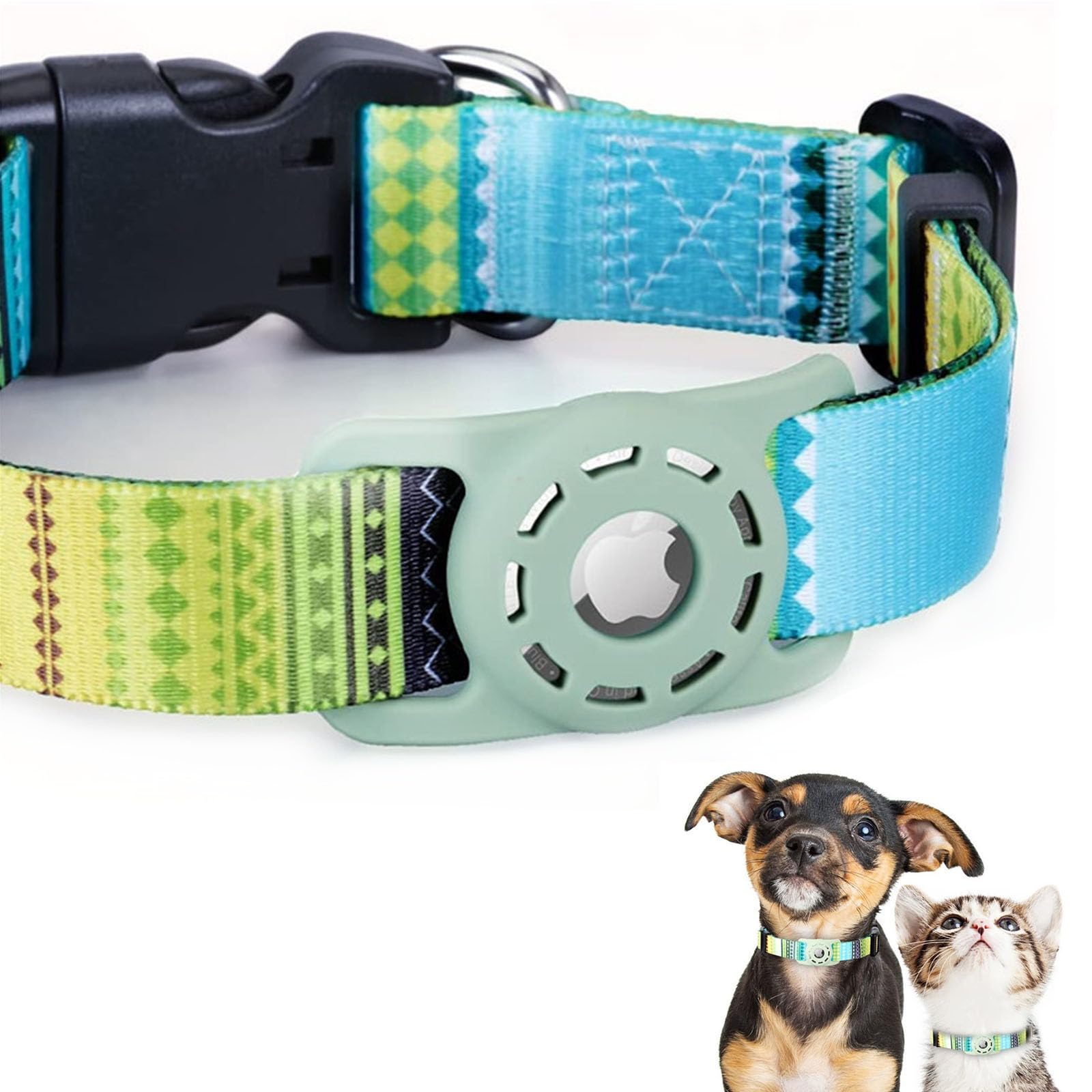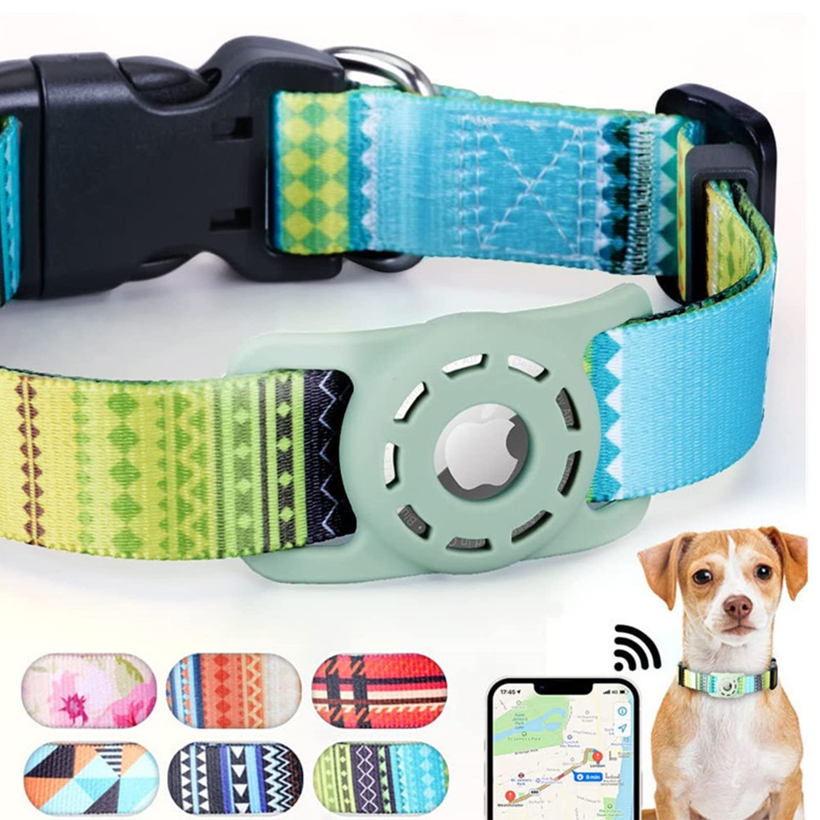 犬用エアタグ対応首輪 AirTag用 猫 犬 ペット首輪 迷子 追跡 ペット用品 AirTag対応ケース (M ボヘミアングリーン)