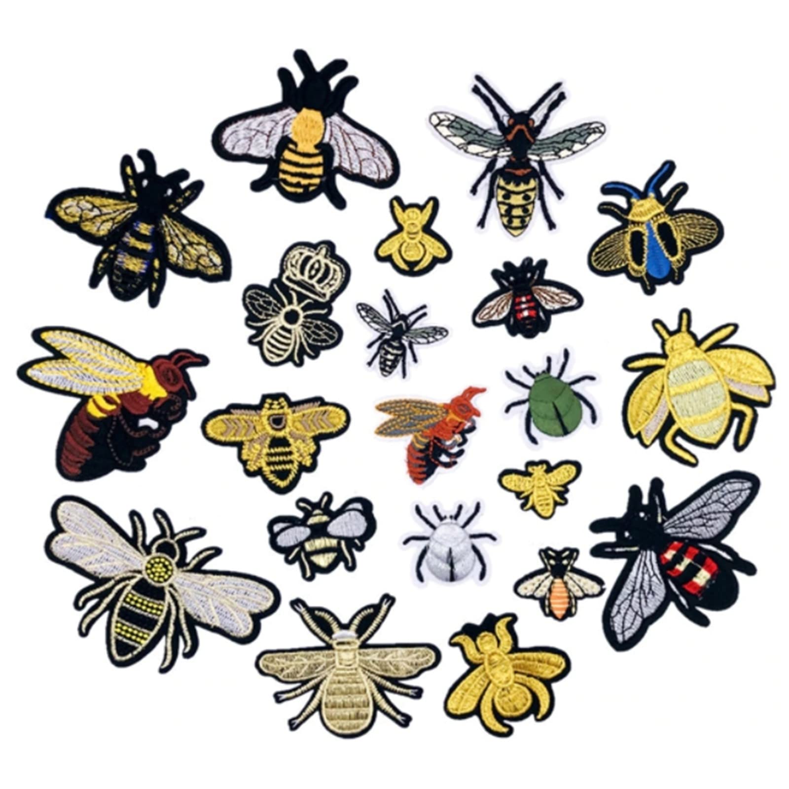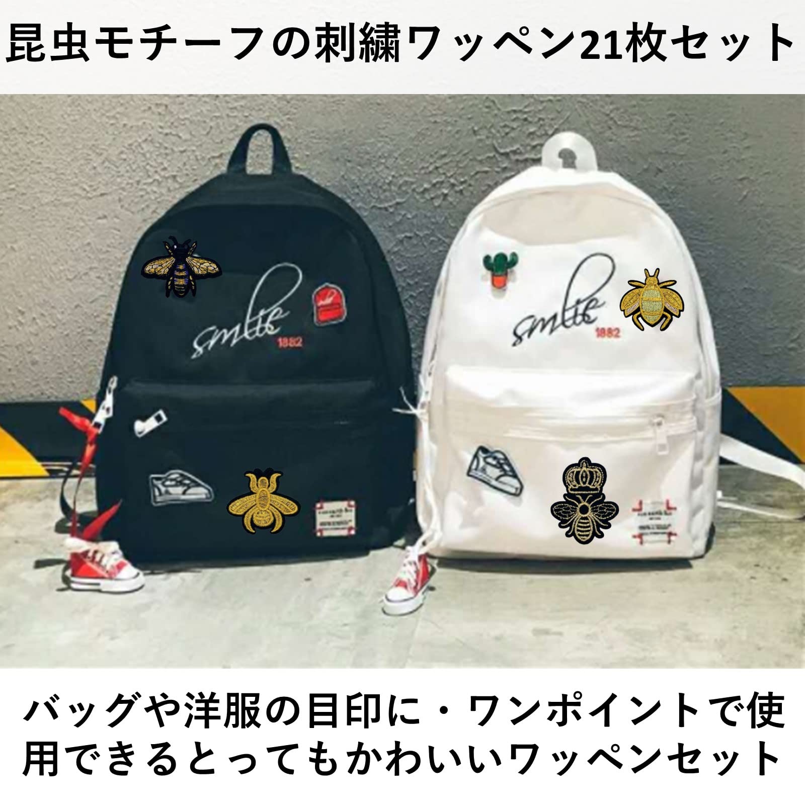 蜂や虫をモチーフとした刺繍ワッペン21枚セットです。バッグや洋服の目印に・ワンポイントで使用できるとってもかわいいワッペンセット。