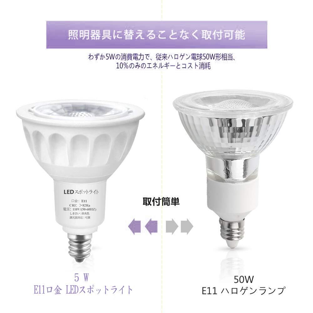 ?省エネ:約90%省エネです。5.5W E11 LEDスポットライトは、50Wハロゲンランプに相当です。