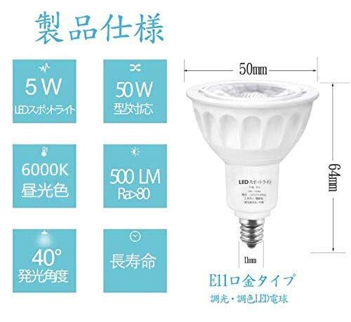 ? E11口金、Φ50、色温度:6000K、ビーム角:40°、昼光色500lm、演色指数(CRI):>80Ra、電圧:110V-120V/(50-60HZ)