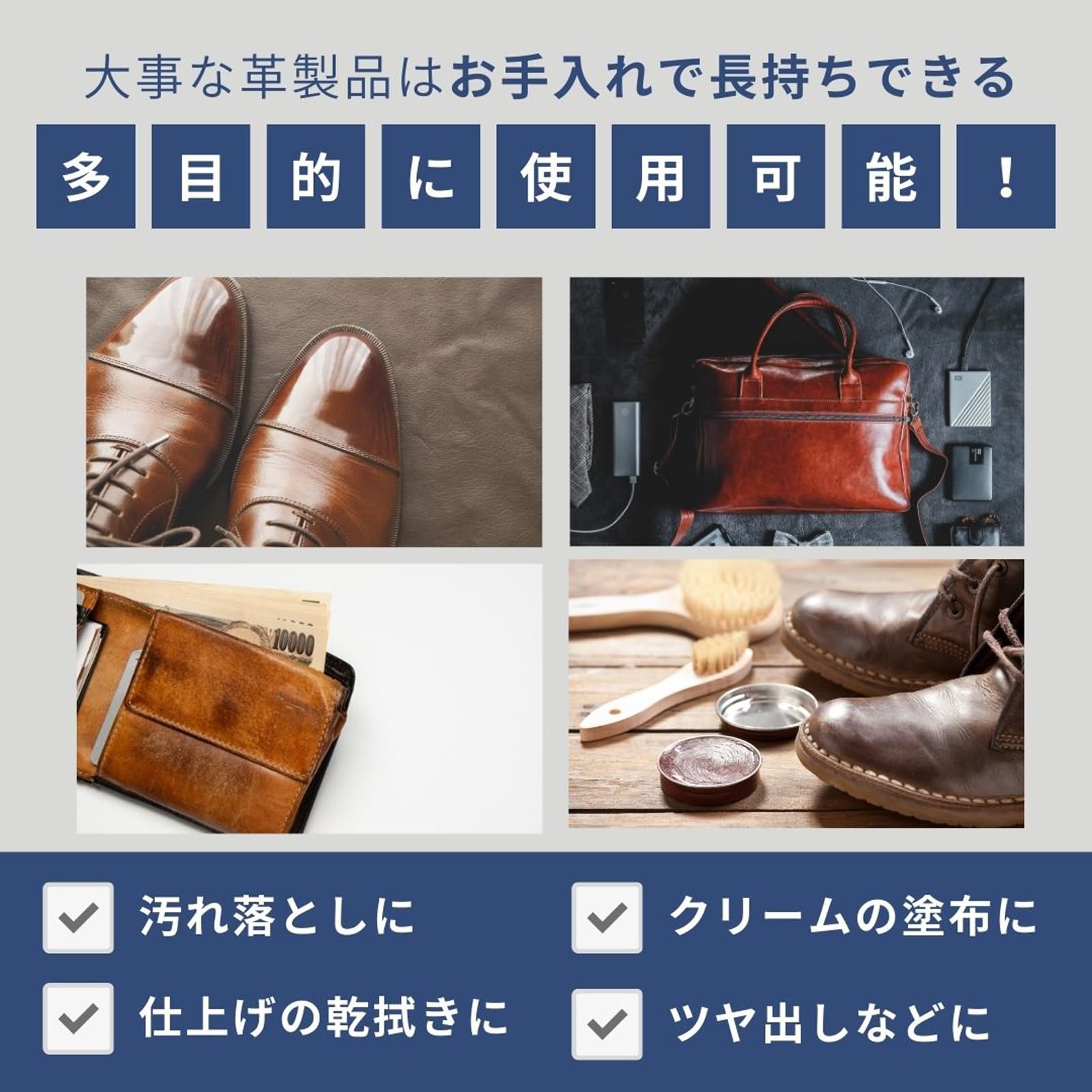 汚れ落としや、クリームの塗布、仕上げの乾拭き、ツヤ出しなど多目的にお使いいただけます。