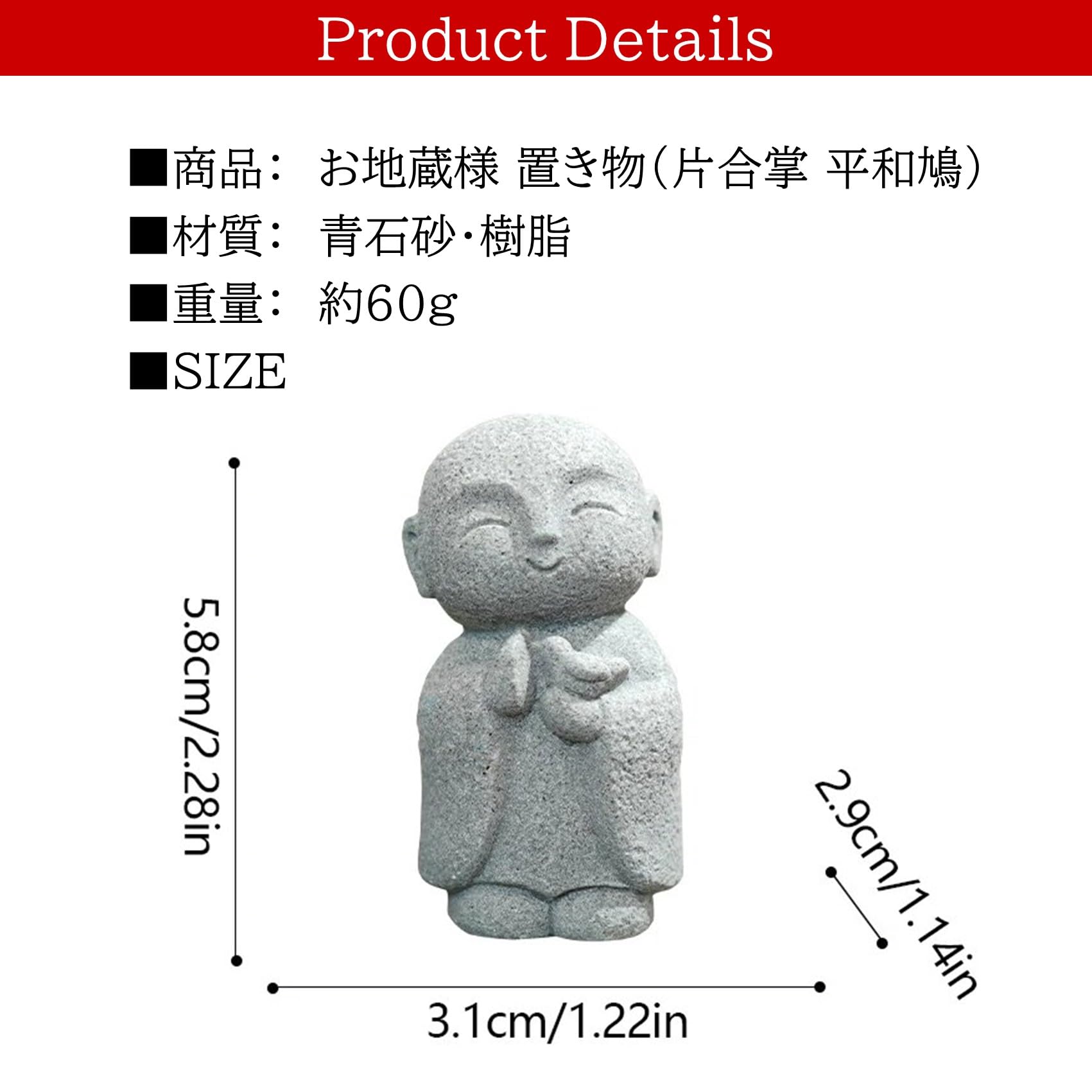 商品詳細: お地蔵様 置き物(片合掌 平和鳩) 【材質】 青石砂・樹脂 【重量】 約60g 【SIZE】 3.1×2.9×5.8cm