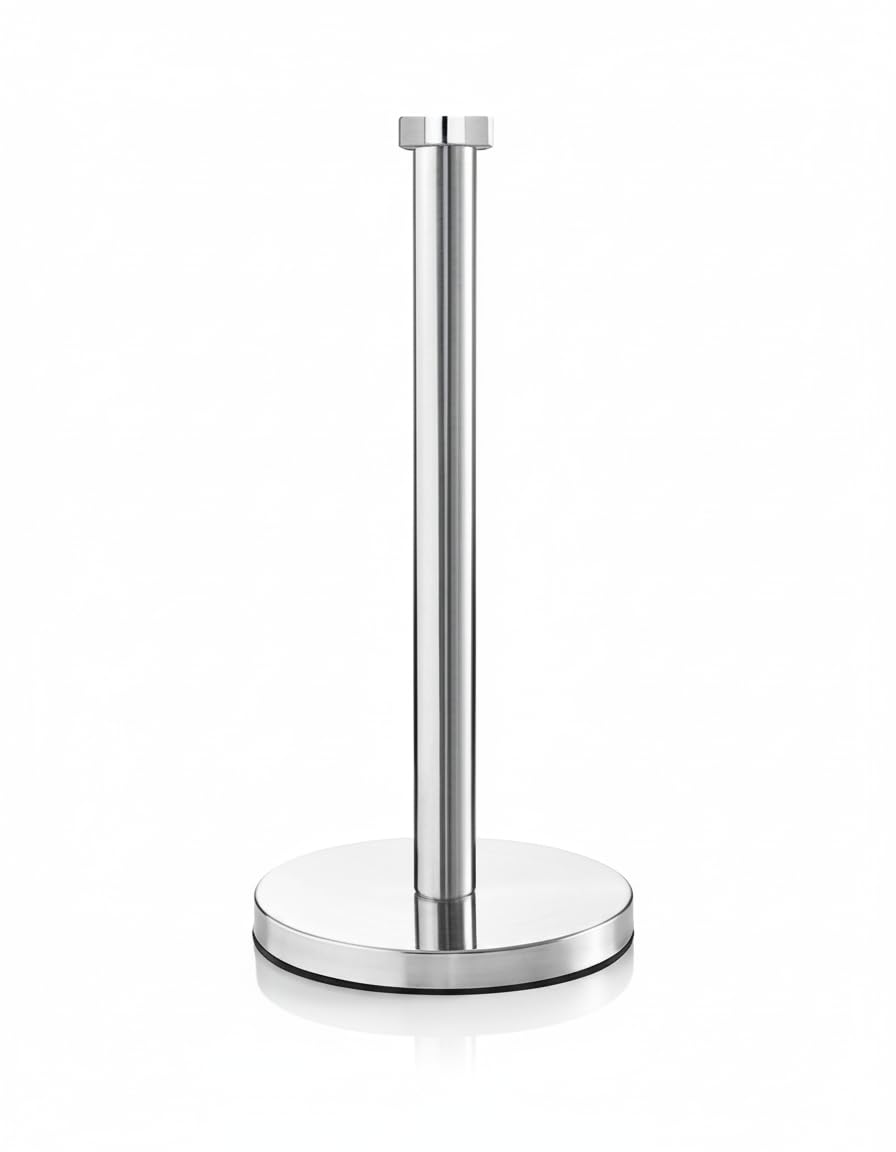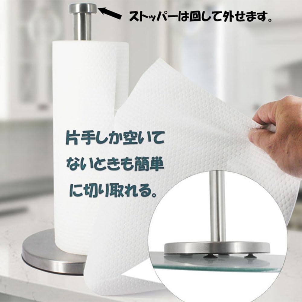 吸盤式 キッチンペーパーホルダー 倒れない 片手で切れる ステンレス製 ペーパースタンド シンプル 大判ロール対応 動かない (シルバー)