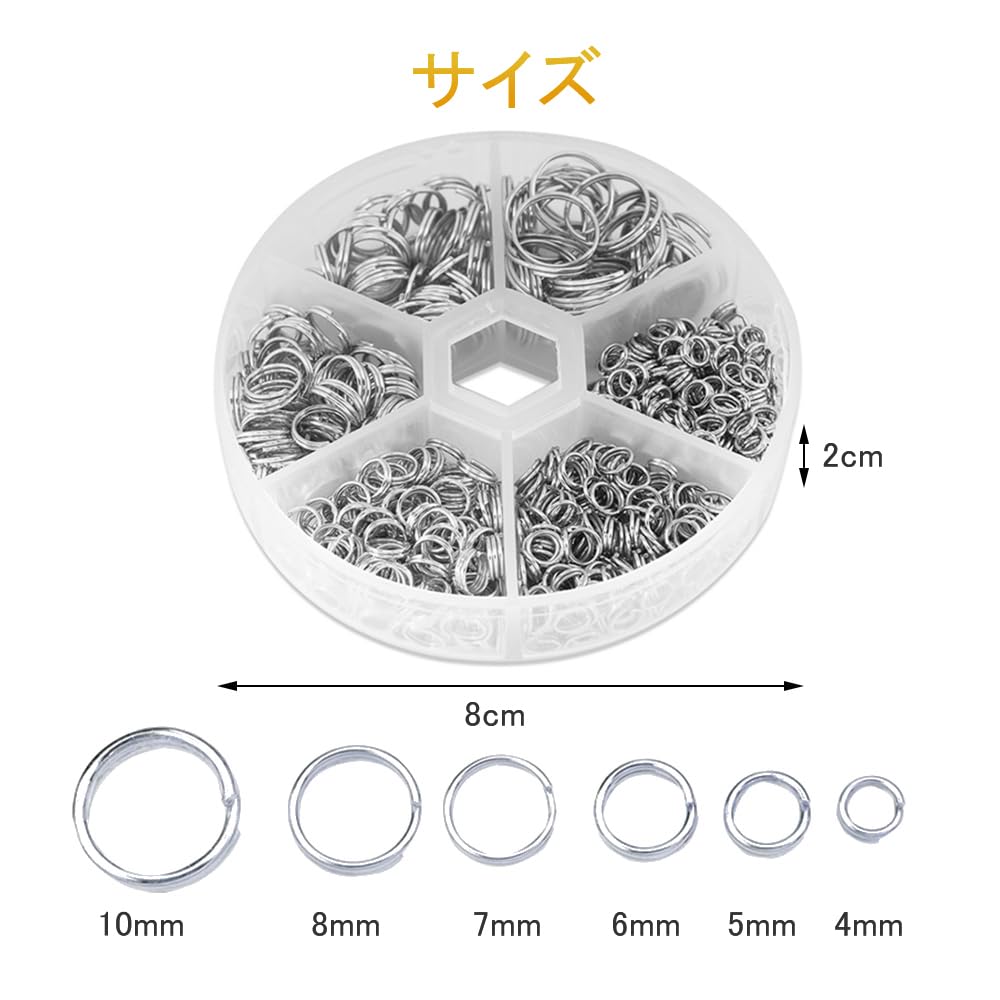 【数量限】サムコス 二重丸カン 4-10mm 6種 ジャンプリング 金具 基礎パーツ キーホルダー パーツ スプリットキーリング 鉄製 DIY用 クラフト用品 ブレスレット ネックレス (シルバー) | GIGATERA
