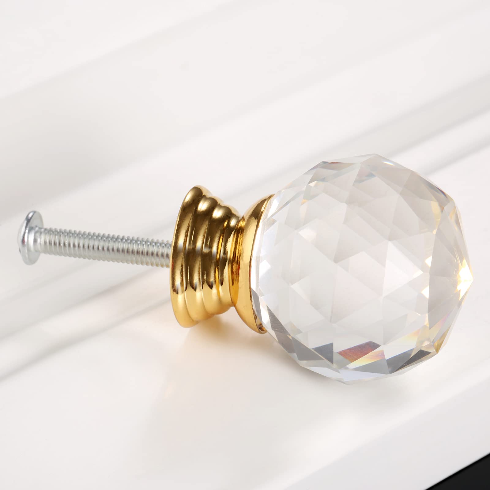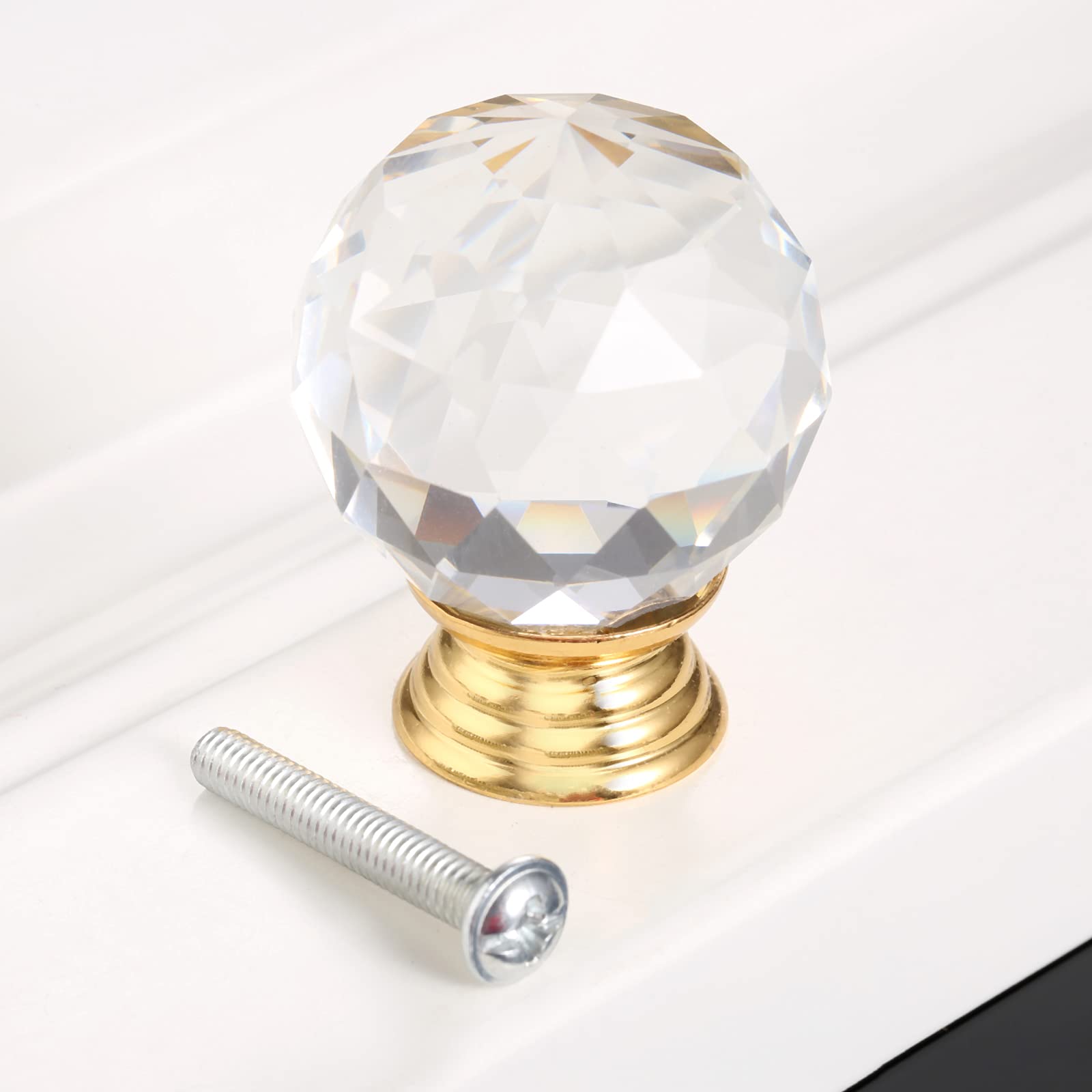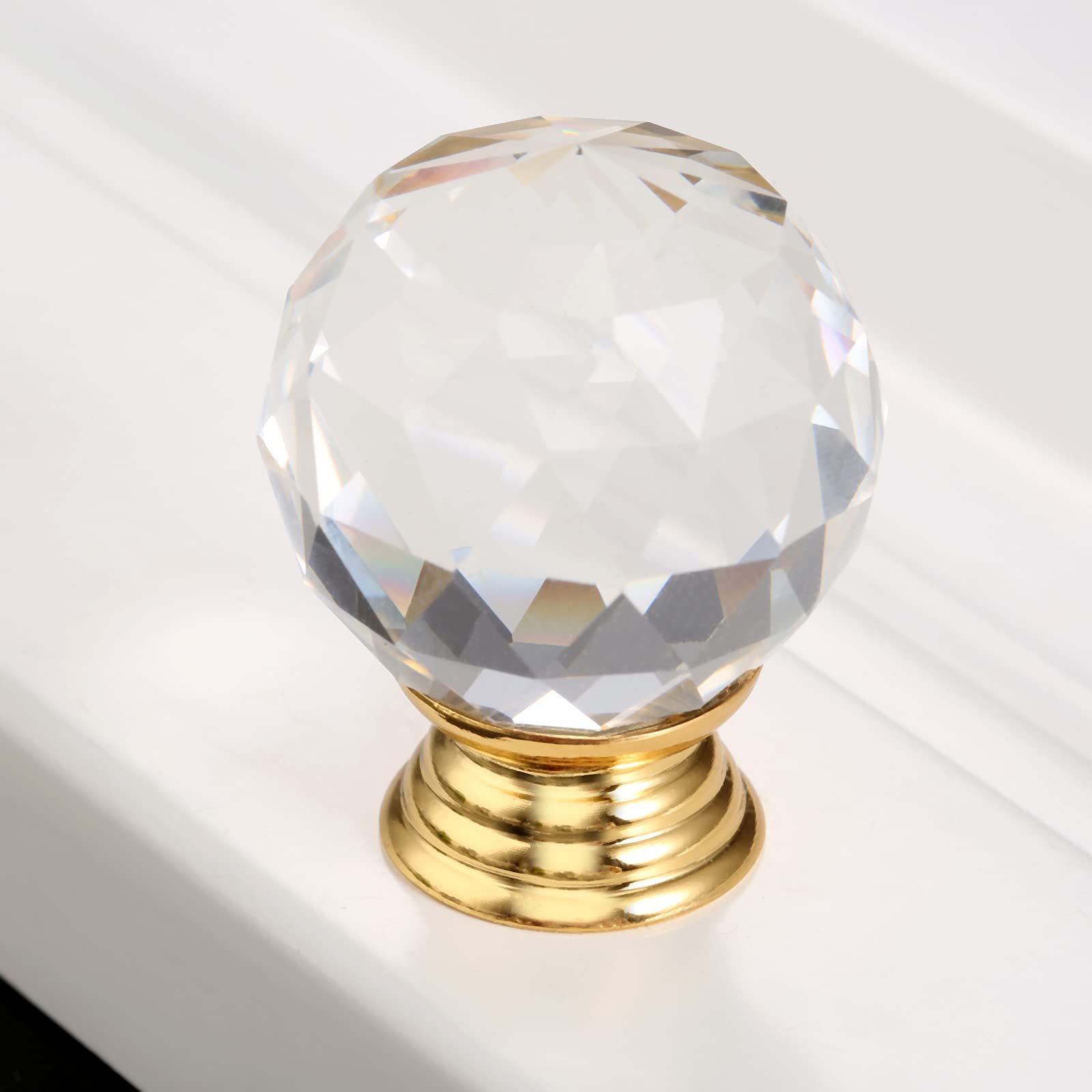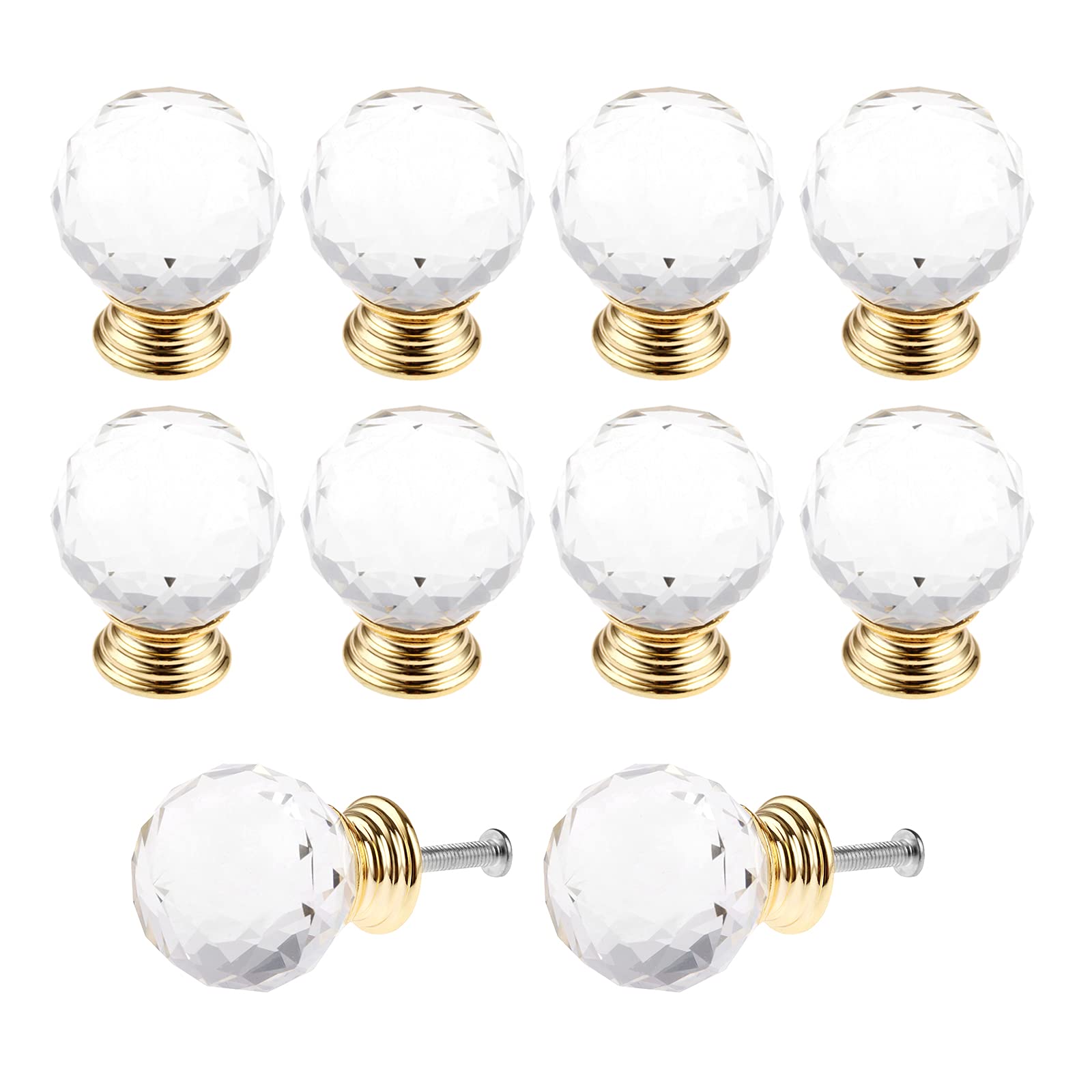 【新着】取っ手 引き出し つまみ クリスタル ノブ キャビネット 食器棚用 タンス 取手 戸棚 透明 ハンドル ゴールド 30mm 10個セット