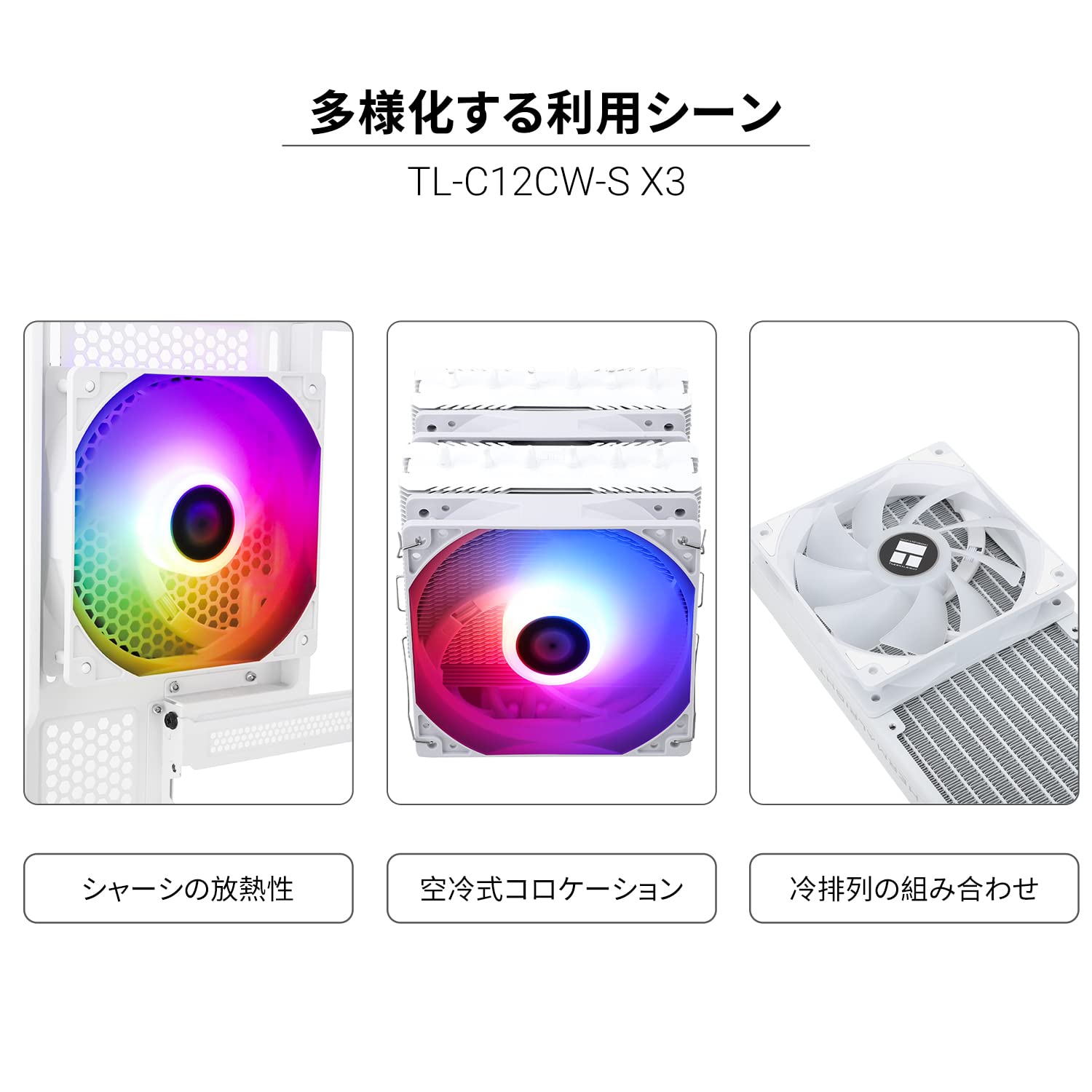 【特価】Thermalright TL-C12CW-S CPUファン 120mm 3pin ARGBケースクーラーファン、PWM静音コンピュータ、白扇 S-FDBベアリング付き、最大1500RPM冷却(3個)