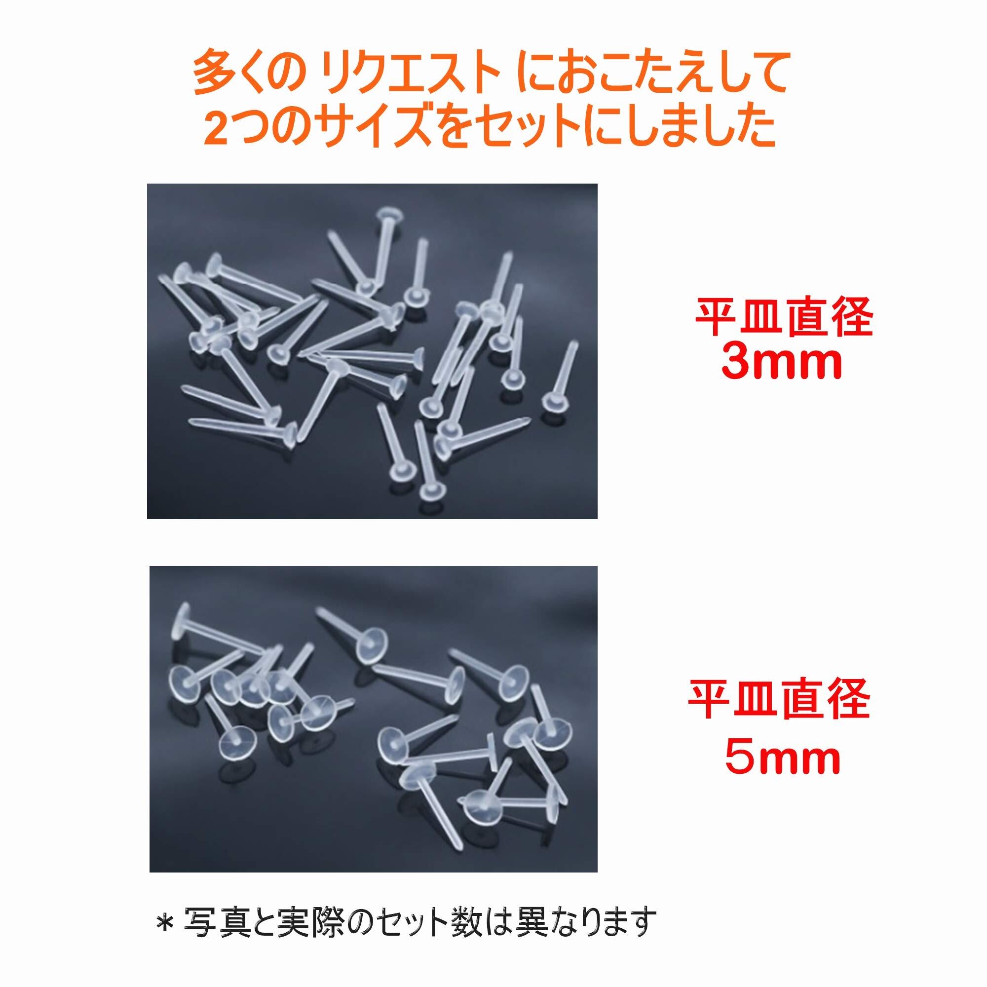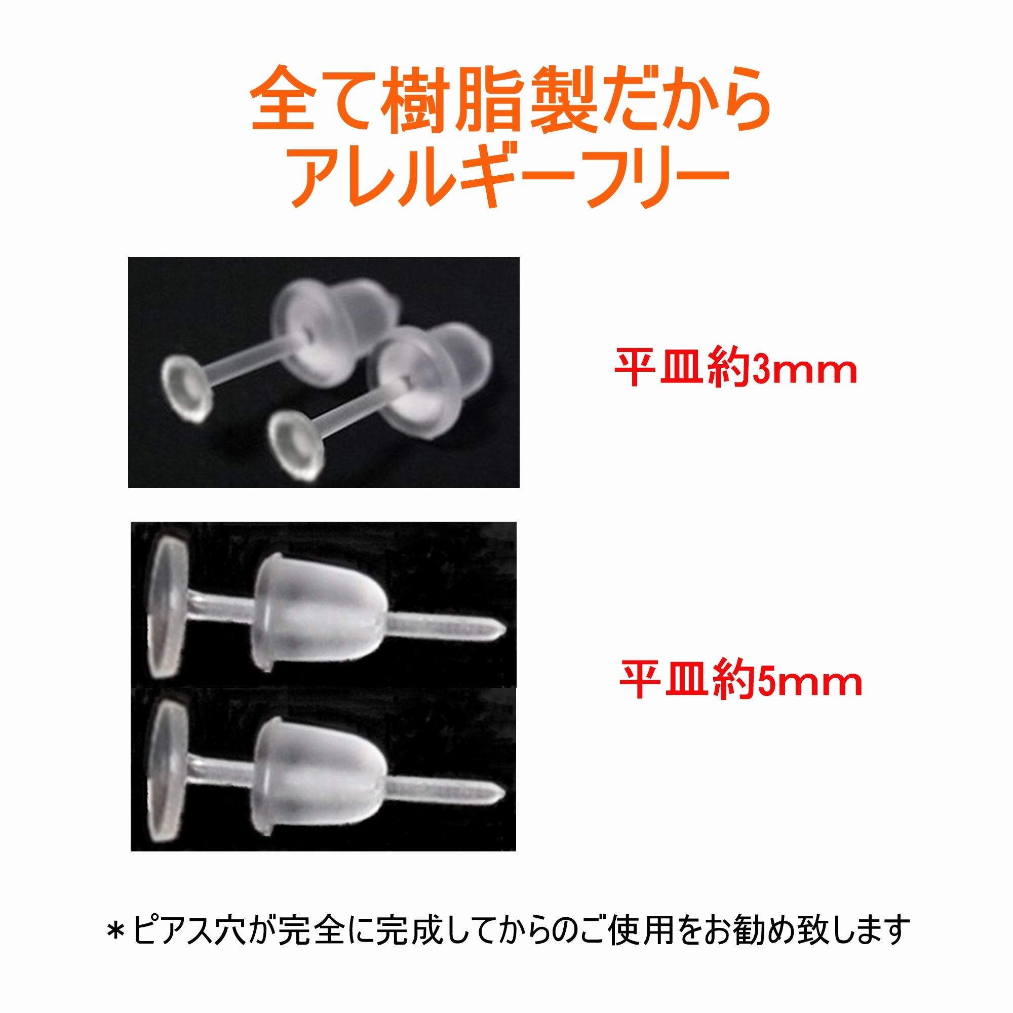 【特価】【Za-Bi (ザ-ビ) 】シークレット ピアス 平皿 2サイズ 80個セット + ピアスキャッチ /3&5ミリ/ 樹脂製 金属アレルギー アレルギー対応 / ピアスホールの保持に最適 /平皿ピアス | GIGATERA