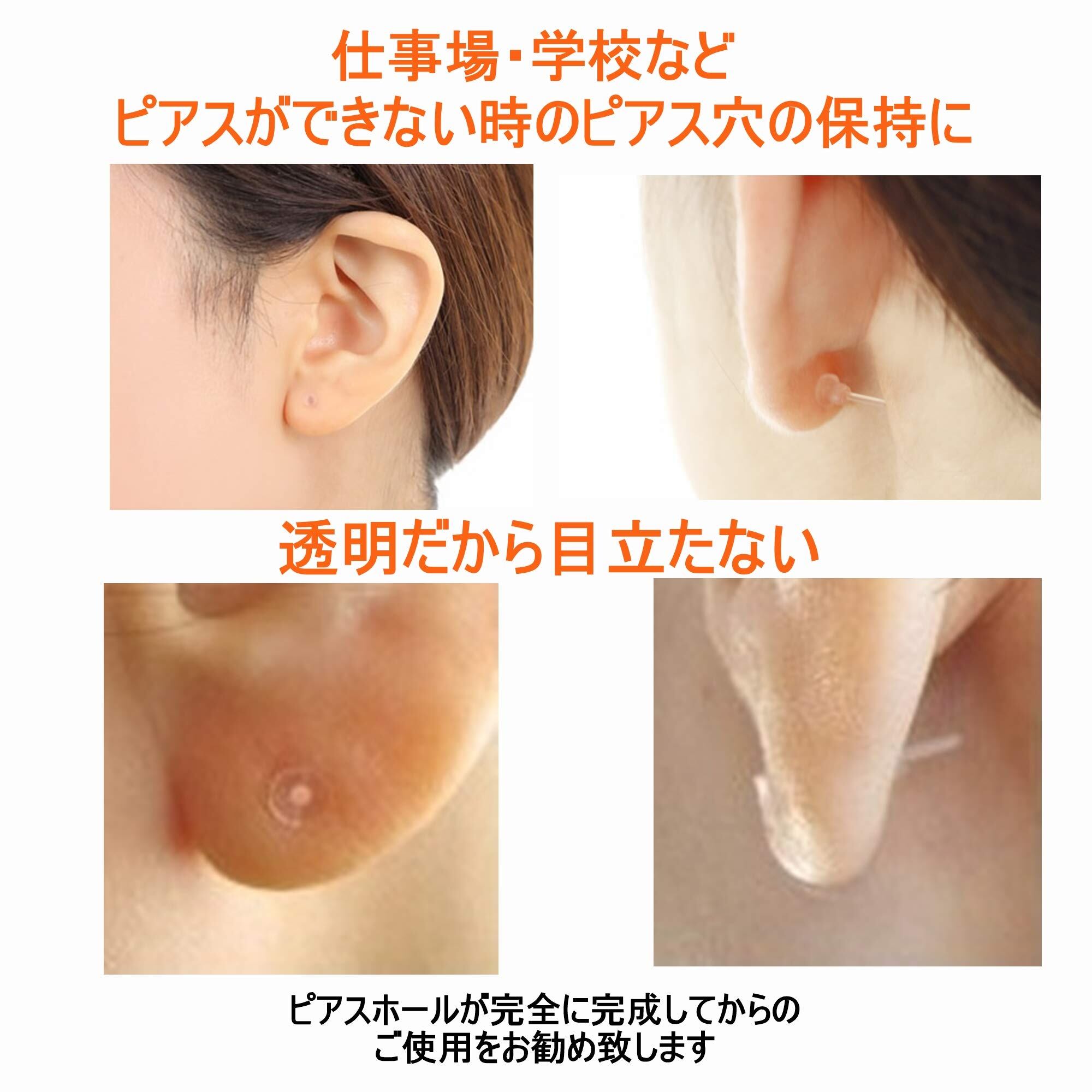 仕事場、学校等ピアスができない場所での ピアスホール 保持にお使い下さい。就寝時の装着もOK。透明で 目立たない。ピアスホールを清潔に保つために定期的な交換をお勧めいたします。