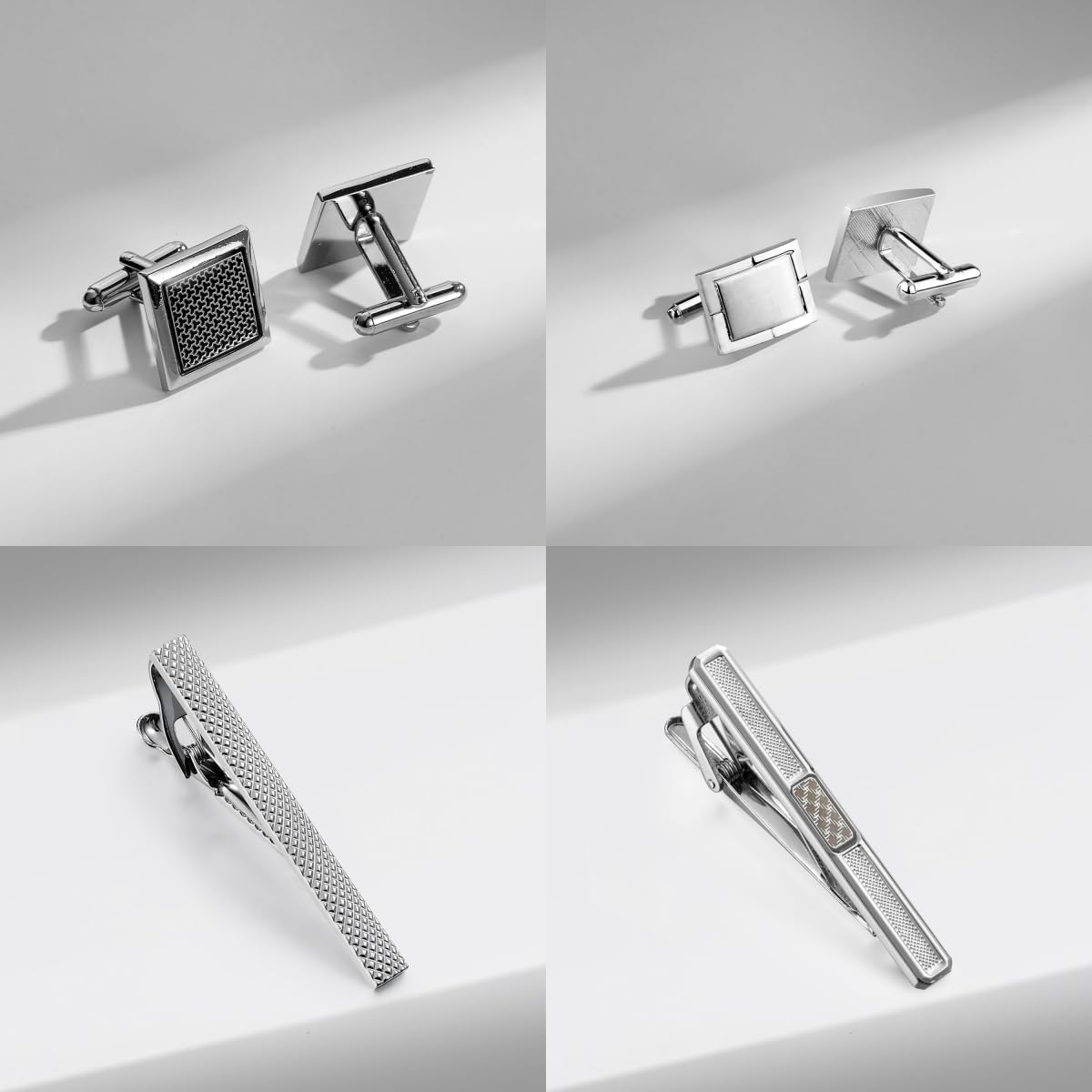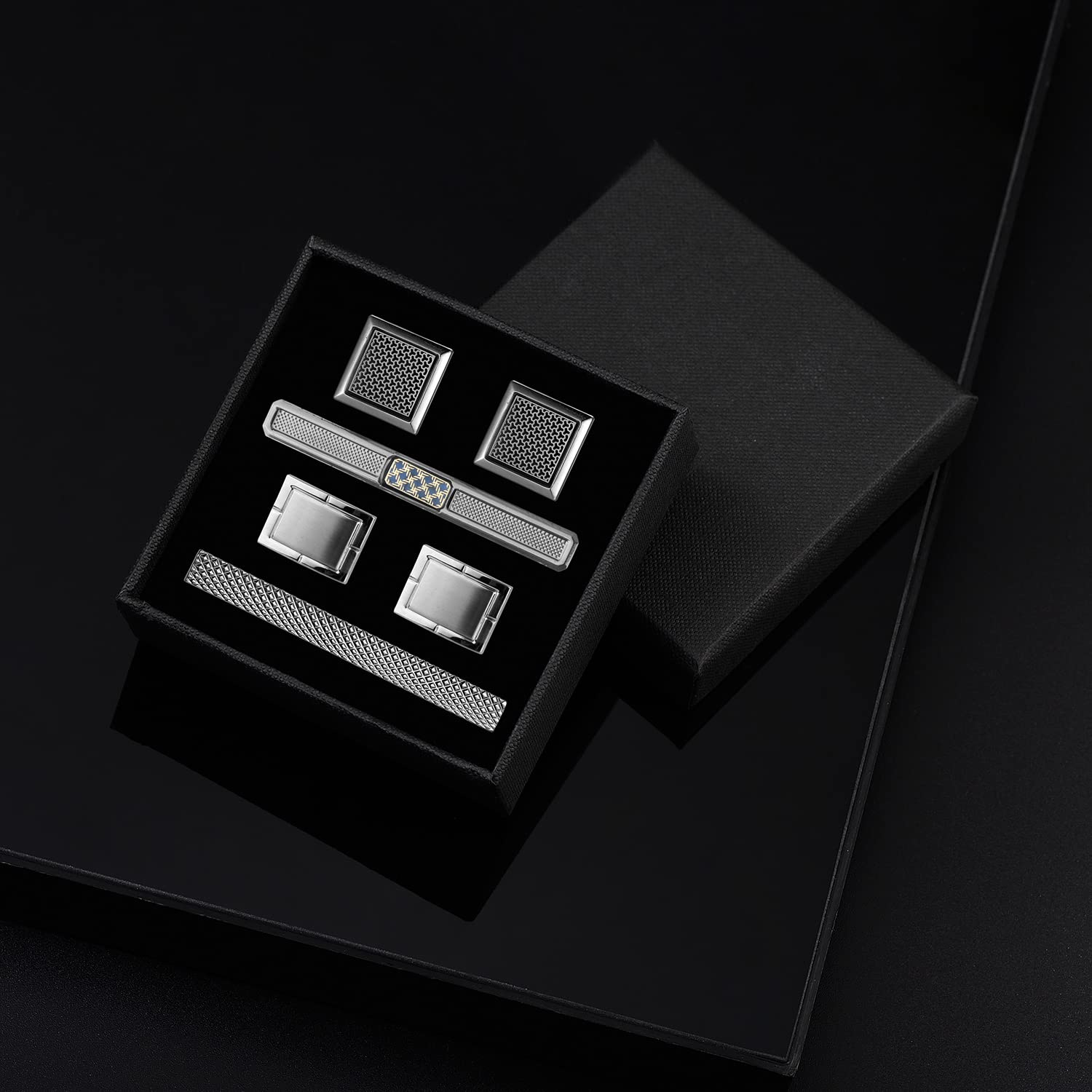[wynameleri]上品なネクタイピン 4本セット カフスボタンセット メンズ 人気 シンプルでいておしゃれ感 日常仕事 結婚式等 高級ケース付き