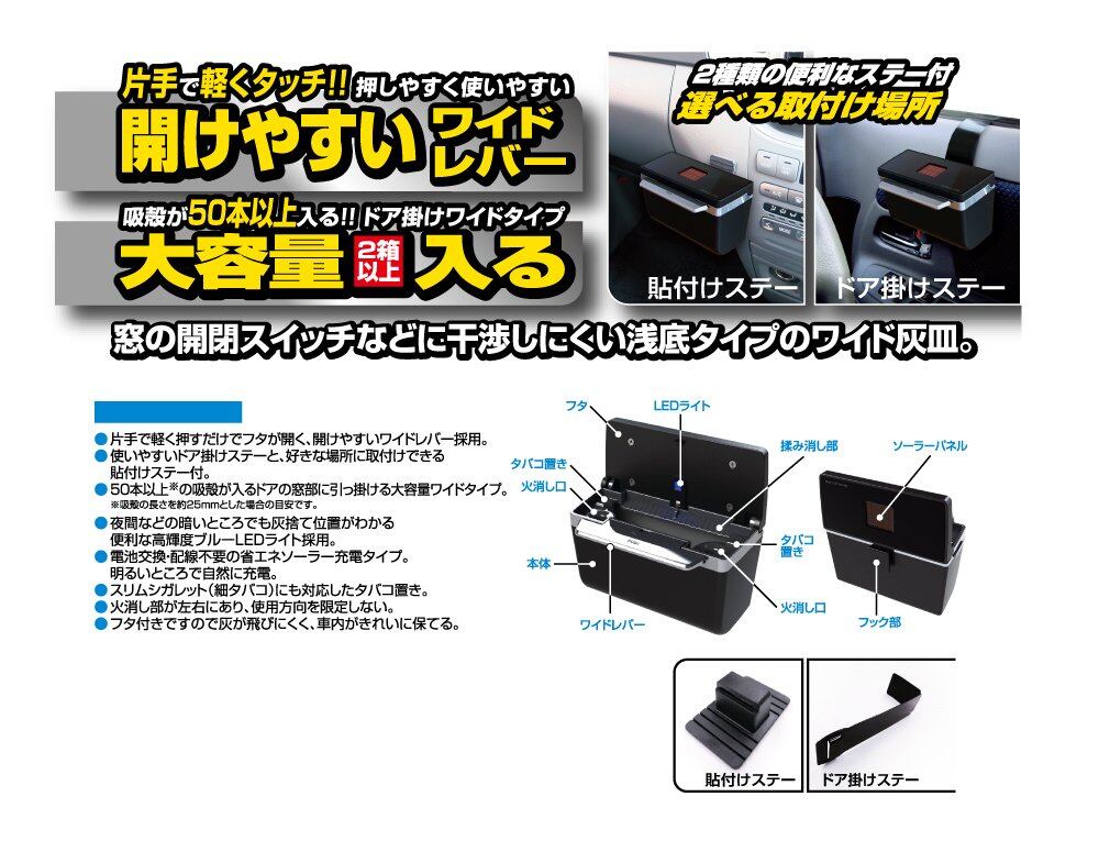 ミラリード 灰皿 ドア掛けソーラーアッシュ2 ブラック LED付き 汎用 SP-186