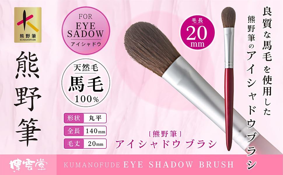 博雲堂 熊野筆 アイシャドウブラシ ノーズシャドー コンシーラーブラシ メイクブラシ アイメイク 化粧ブラシ 高耐久 お手入れ簡単 穂先コンパクト (アイシャドウブラシ(馬毛))