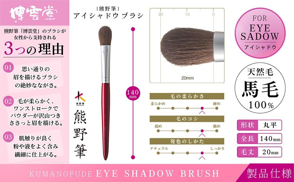 【数量限】博雲堂 熊野筆 アイシャドウブラシ ノーズシャドー コンシーラーブラシ メイクブラシ アイメイク 化粧ブラシ 高耐久 お手入れ簡単 穂先コンパクト (アイシャドウブラシ(馬毛))