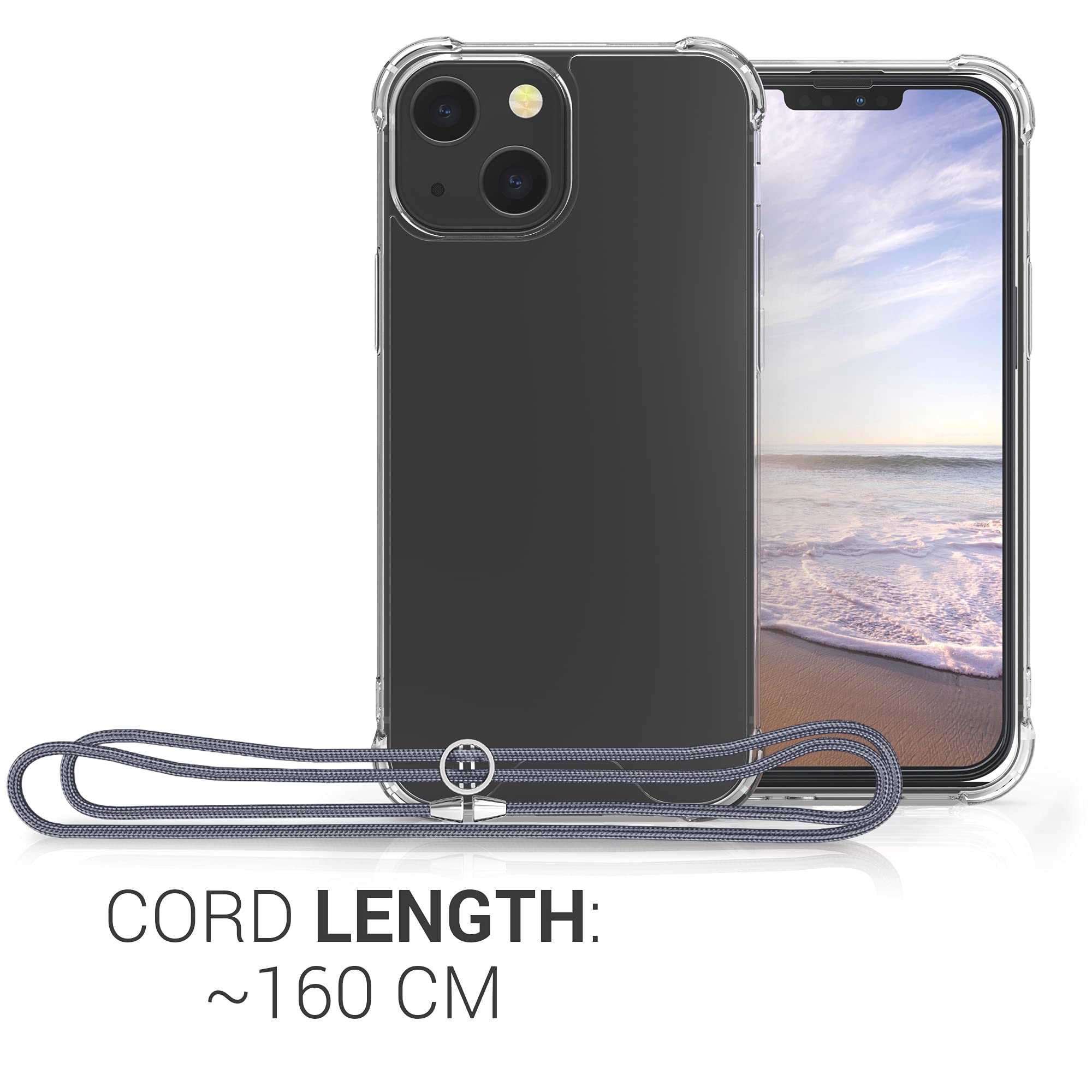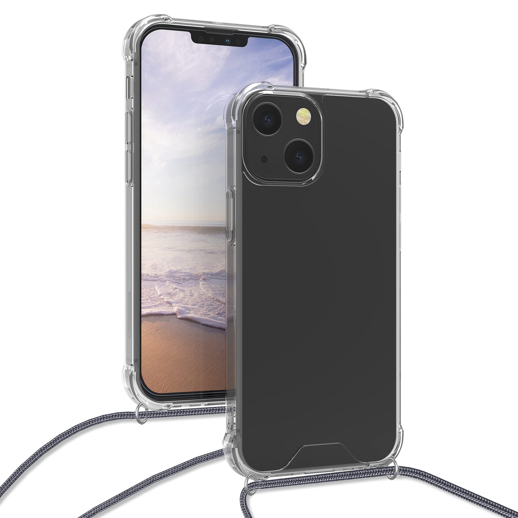 【セール】kwmobile スマホショルダー Apple iPhone 13 mini対応 ケース - ショルダー クリア TPU カバー ストラップ付き - 肩掛け 首掛け 耐衝撃