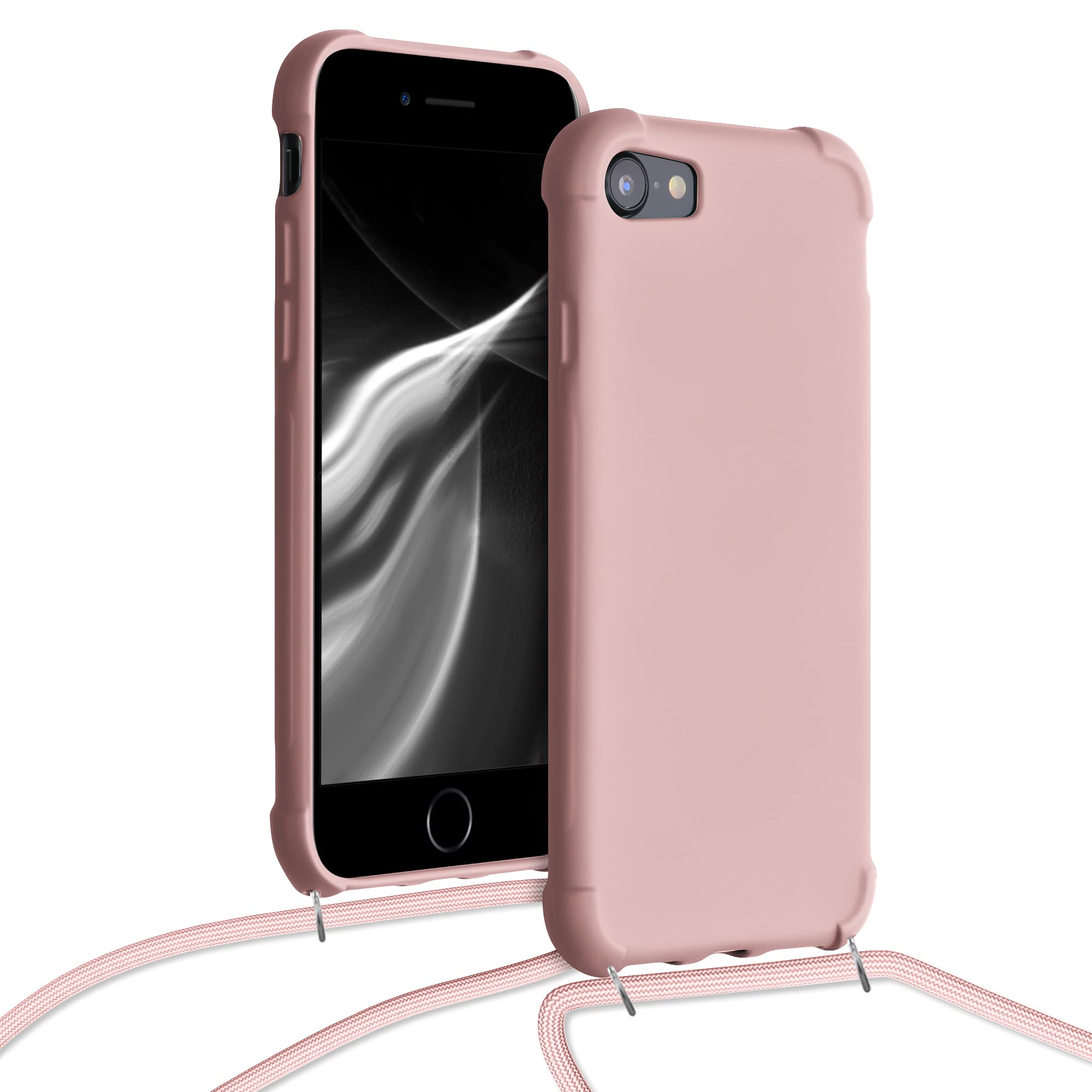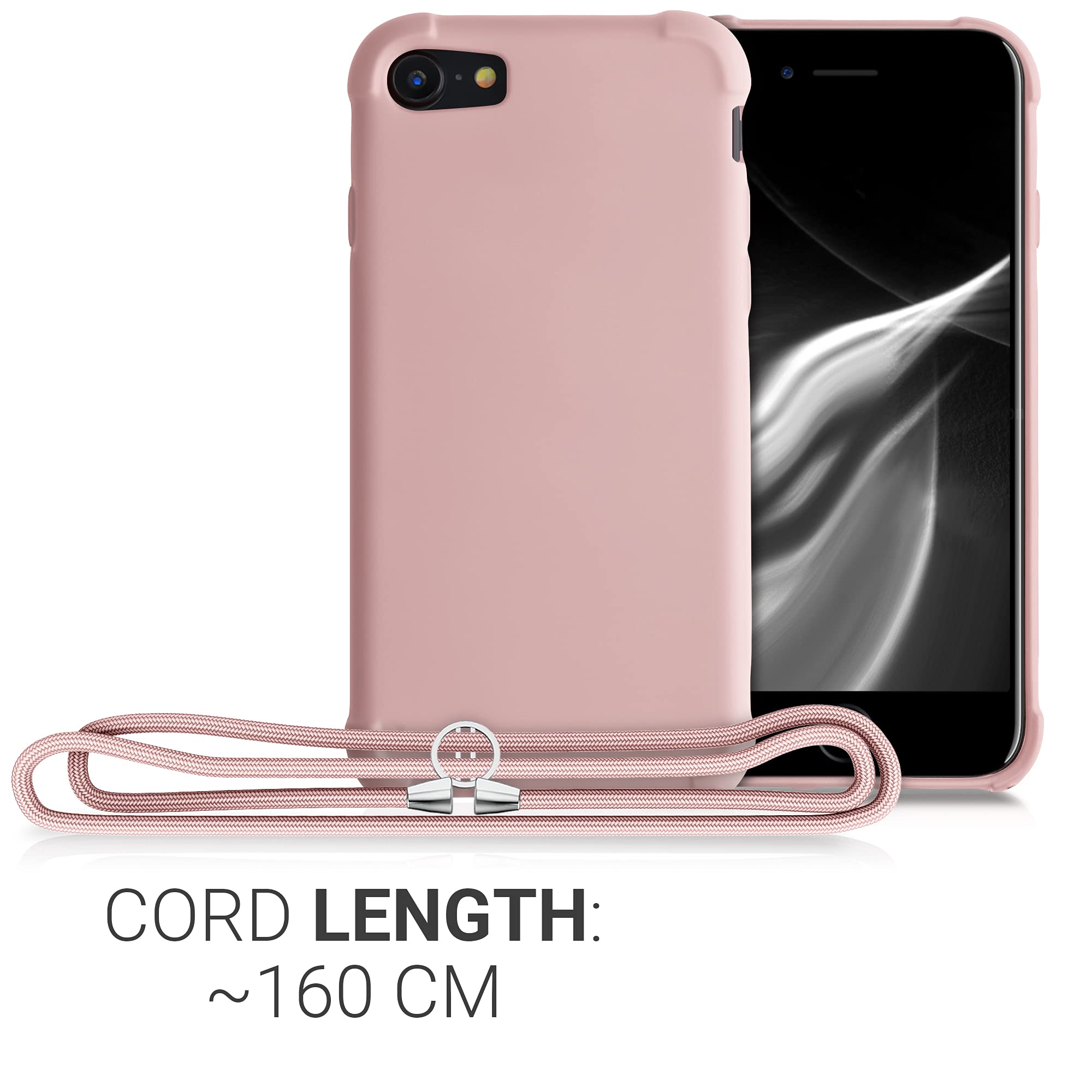 kwmobile スマホショルダー Apple iPhone SE3 / iPhone SE2 / iPhone SE (2022) / iPhone SE (2020) / iPhone 8 / iPhone 7対応 ケース - TPU カバー 肩掛け ストラップ付き パール