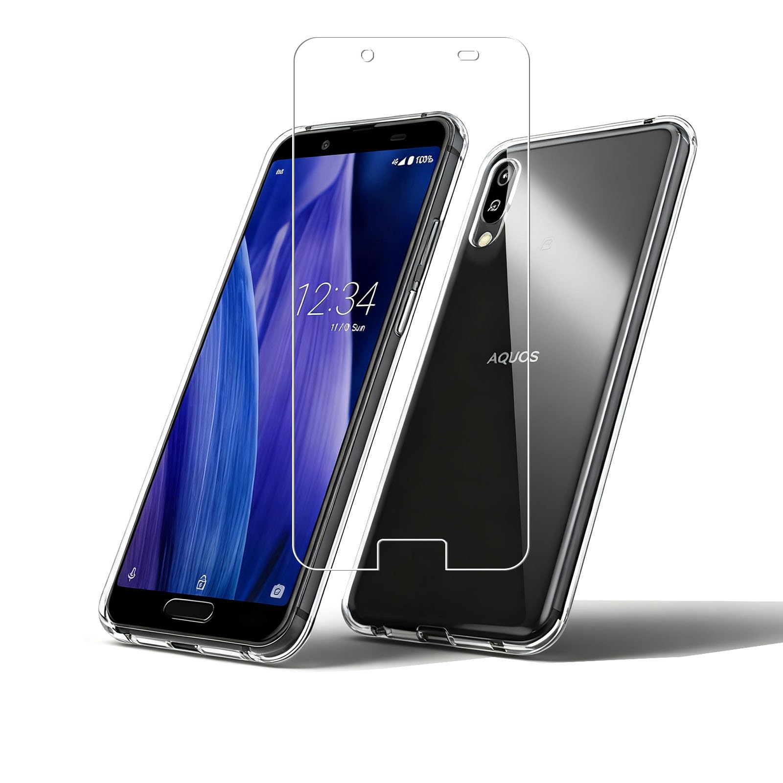 【在庫処分】Aquos sense3 専用 aquos sense3 ガラスフィルム + TPU aquos sense3 ケース セット | 日本旭硝子製強化ガラス(SHV45 SH-02M SH-RM12 対応) 硬度 9H 指紋防止・気泡ゼロ 自動吸着貼りやすい | アクオスセンス 3 TPU ケース 完全透明 耐衝撃・耐磨耗 黄変しにくい