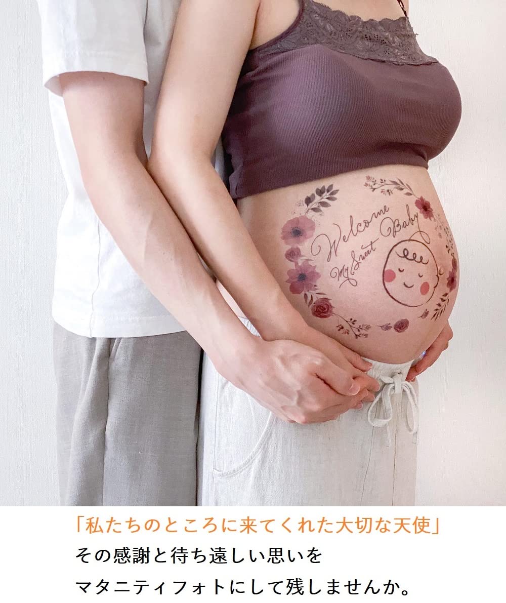マタニティフォト ボディペイントシール タトゥーシール 練習用シール付き 貼り方説明書付き (J)