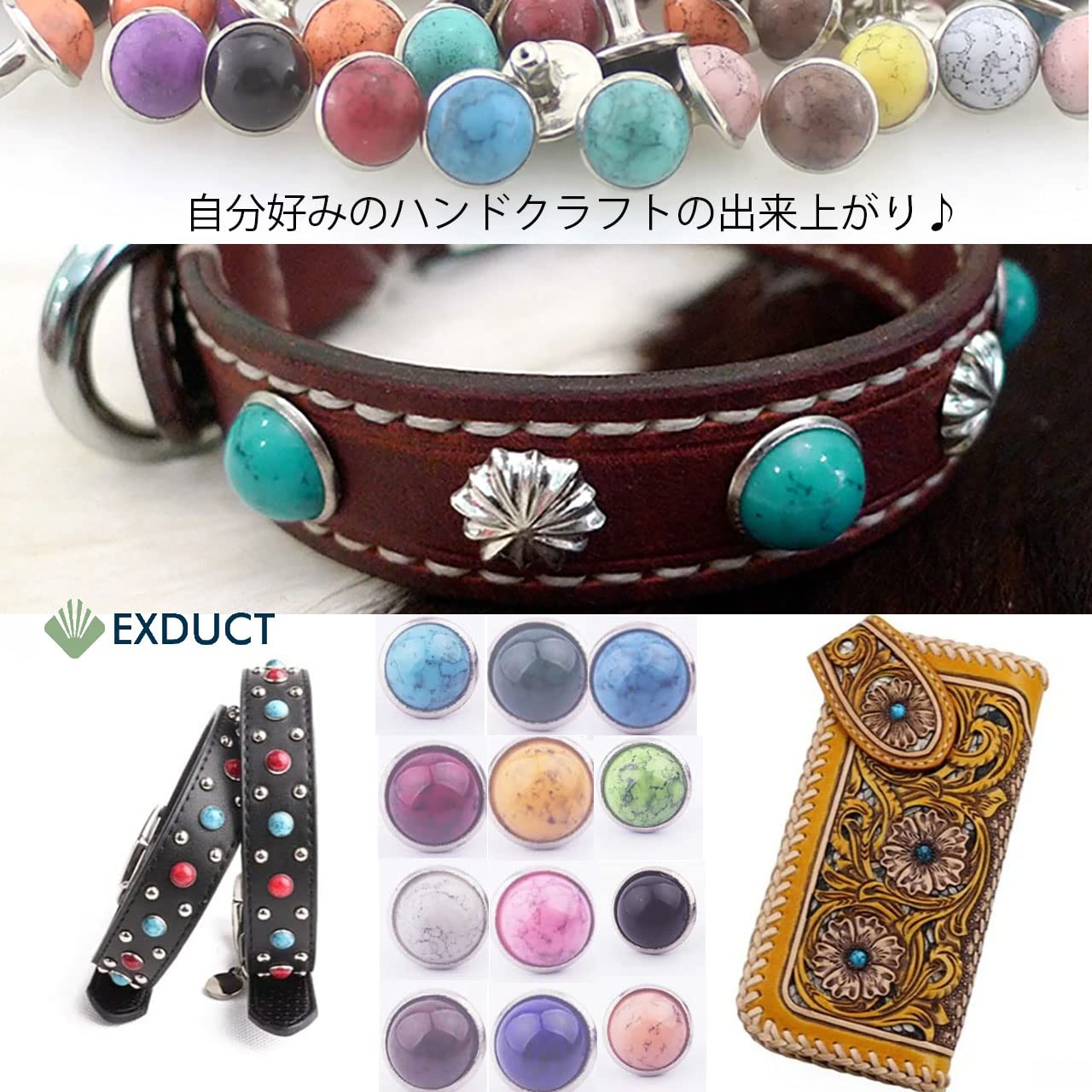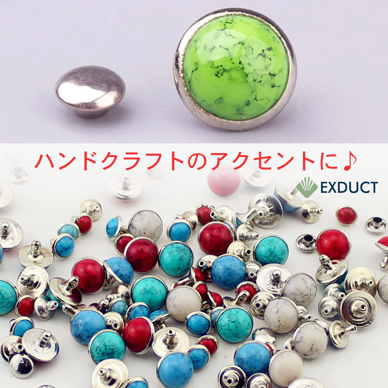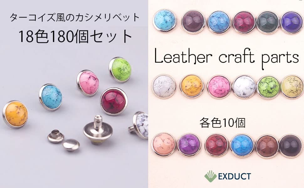 高級感のあるターコイズ風リベットなので革製品に打ち込むことでアクセントになります。18色あるのでお好みのデザインにできます。