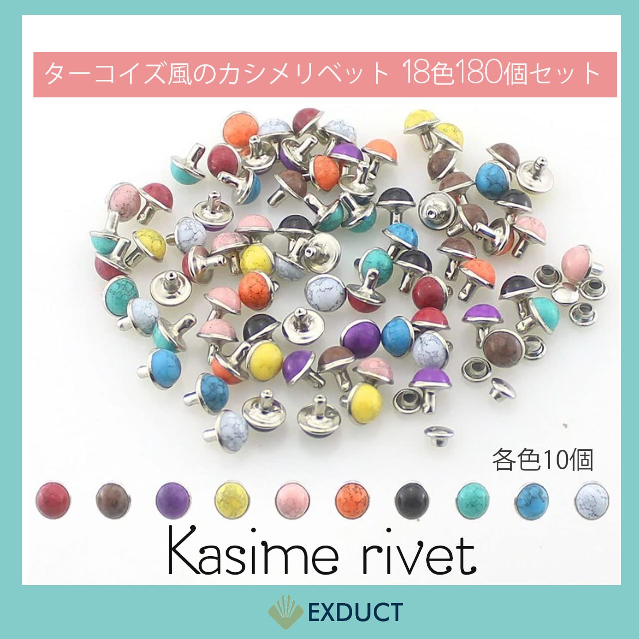 ターコイズ風のカシメリベット 18色180個セットです。