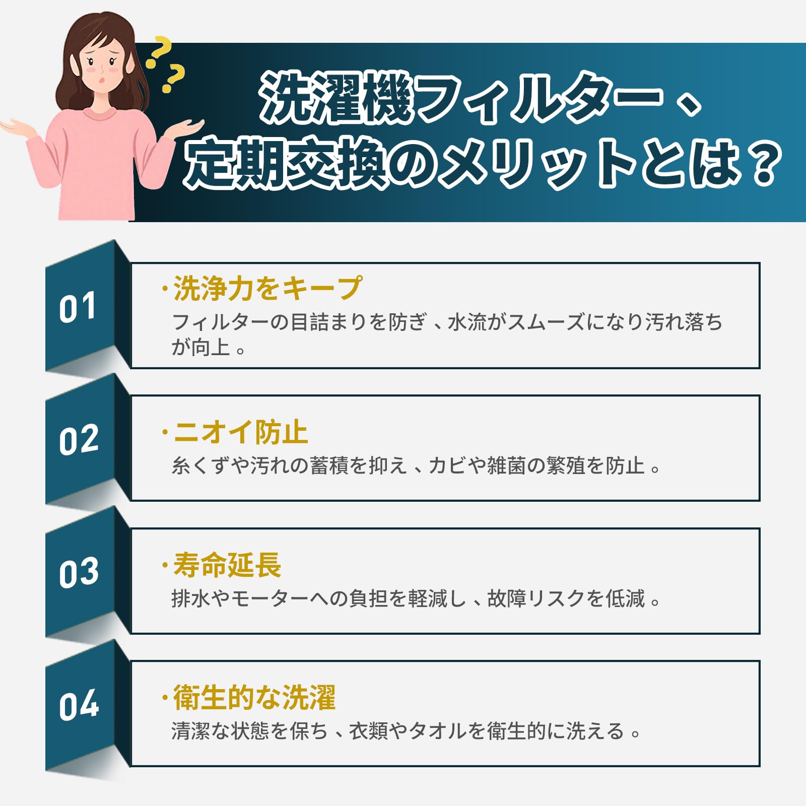 【効果的な糸くず除去】 この洗濯機用糸くずフィルターは、お家の洗濯をより快適で効果的なものに変えます。高品質の素材で作られたこのフィルターは、糸くずや髪の毛、ペットの毛などの不要なゴミをしっかりキャッチし、洗濯機の寿命を延ばすお手伝いをします。