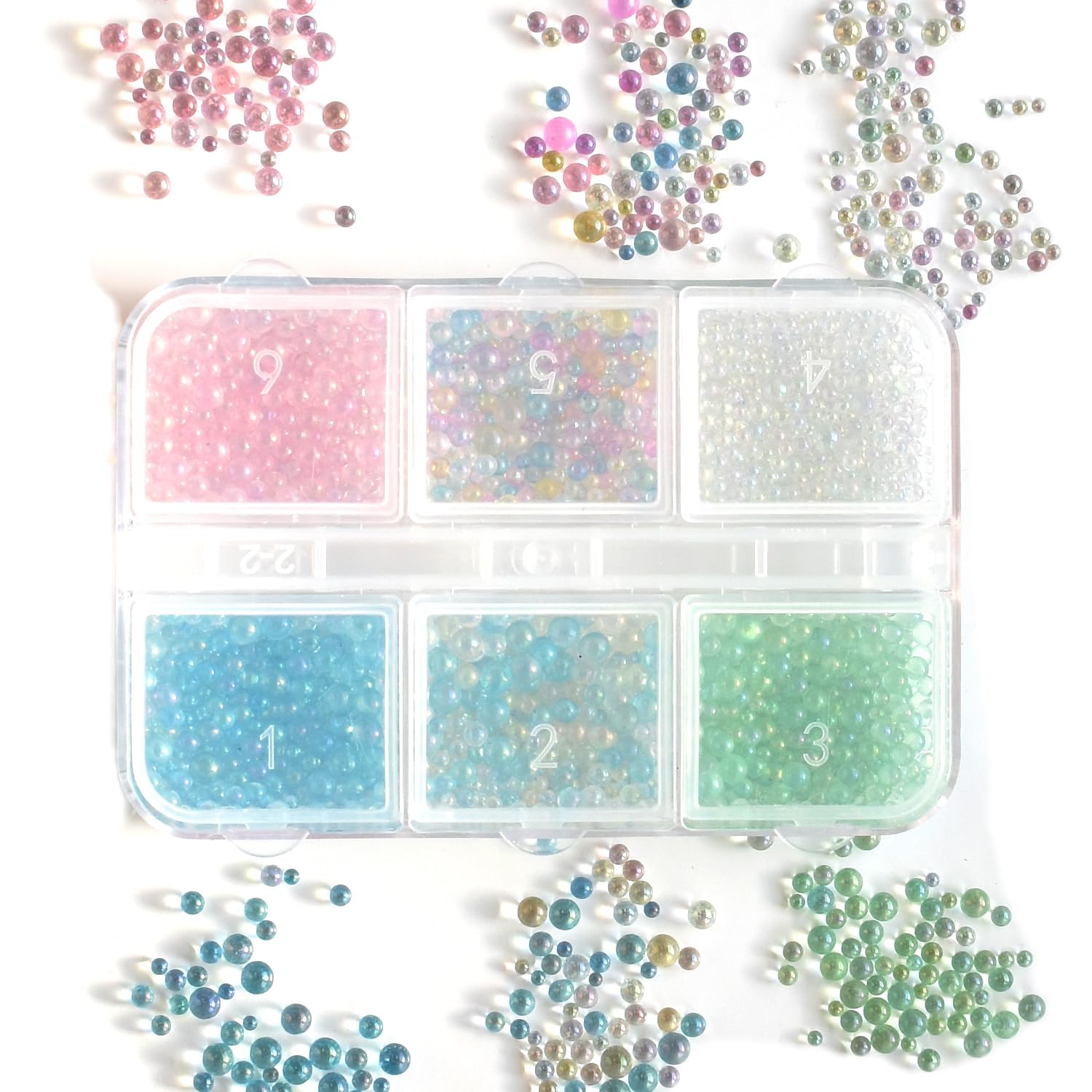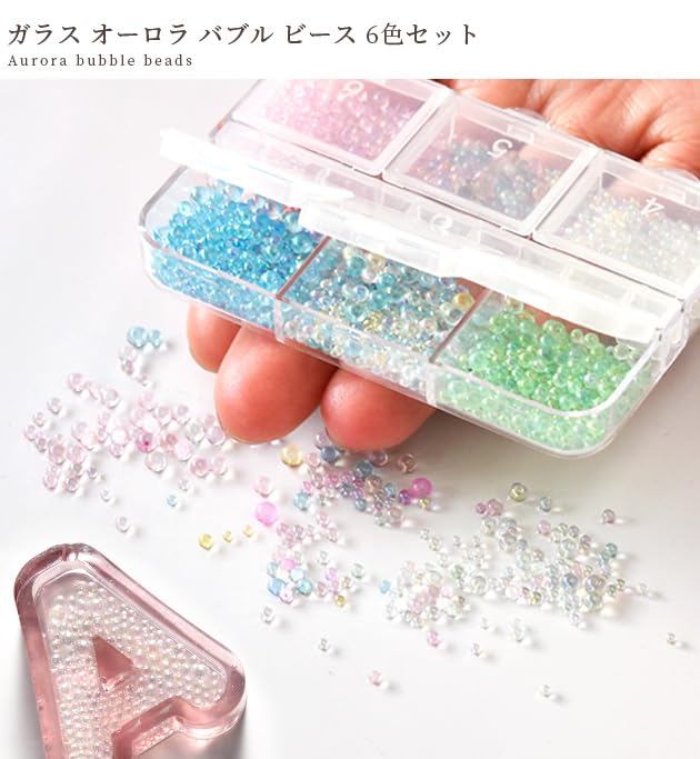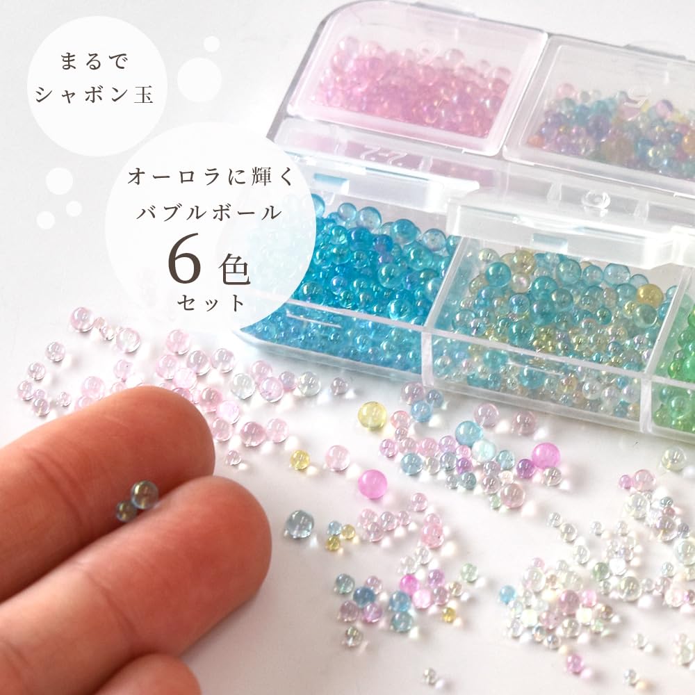 MYmama ガラスオーロラ バブルビーズ 6色セット 収納ケース付き 封入パーツ ビーズ・ストーン クラフト 手芸用品