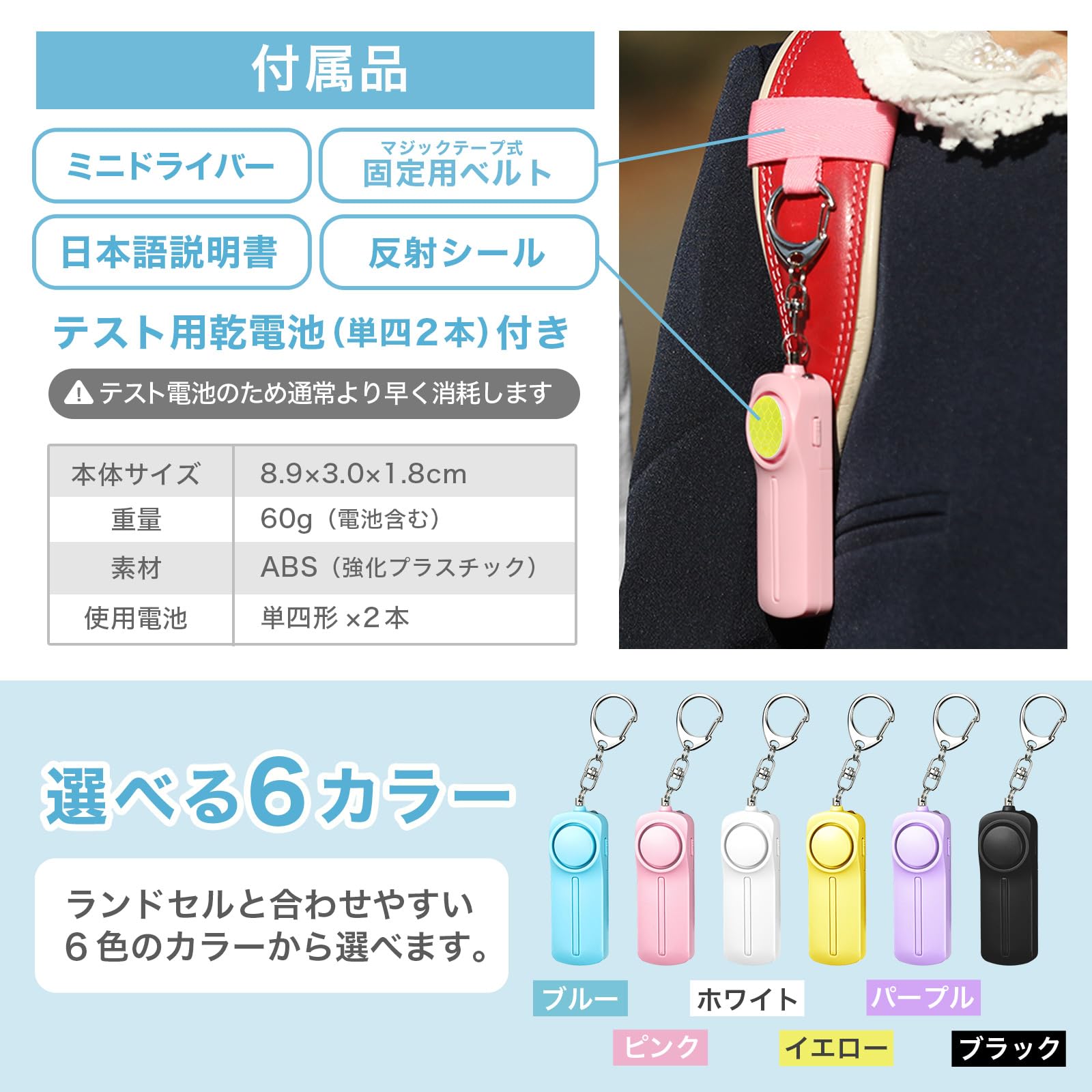 【選べる6色??】男の子も女の子も使える6色のカラー展開!ランドセルのカラーに合わせて選べます。【??日本企業による安心サポート】1年間の延長付きで問い合わせもLINEでスムーズ。<防犯ブザーの使い方>などの動画も公式LINEより配信しております。