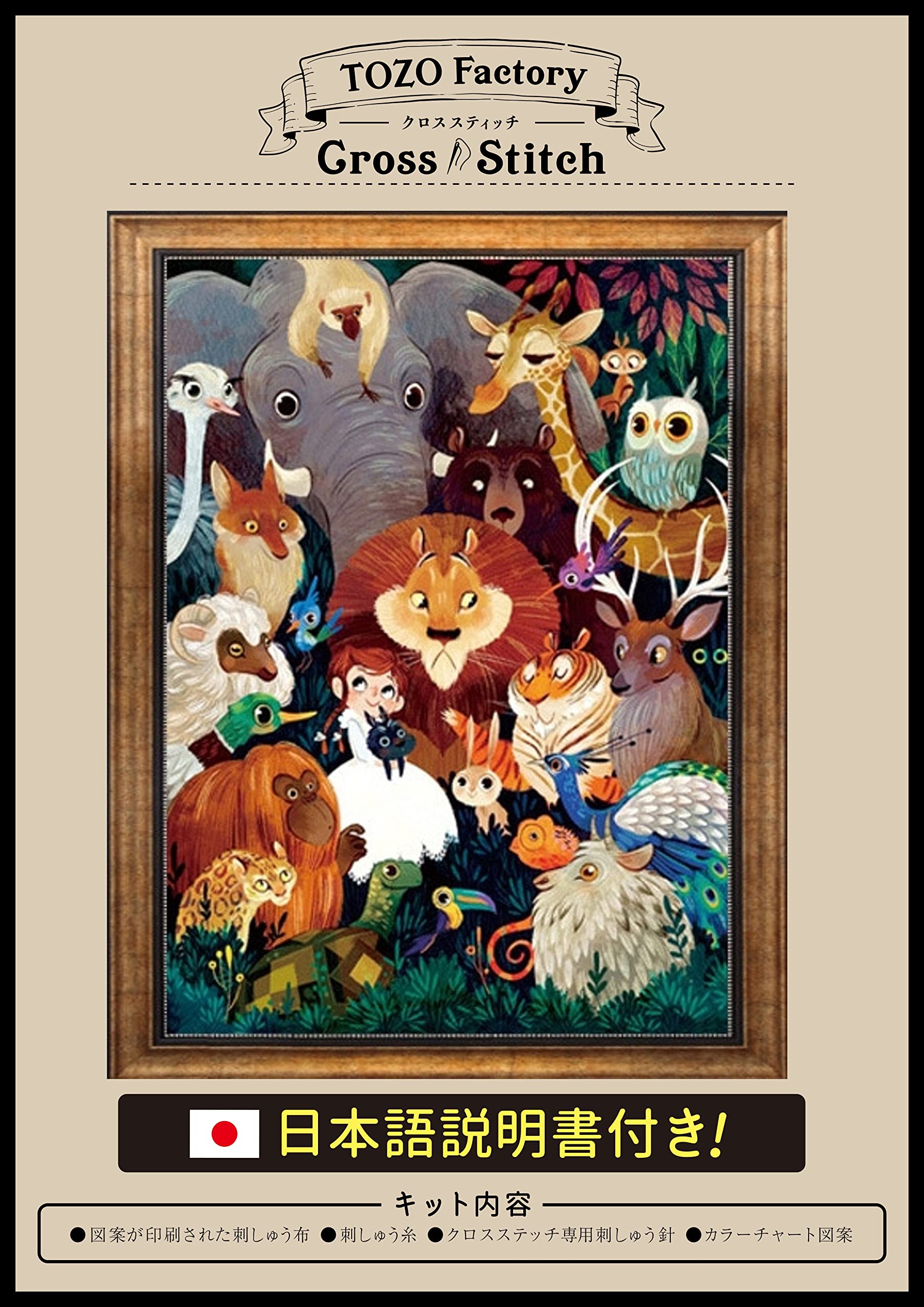 (TOZOファクトリー) クロスステッチ 刺繍キット 刺繍 ししゅうキット 図柄印刷 日本語説明書付き 動物 11CT ライオン 動物大集合